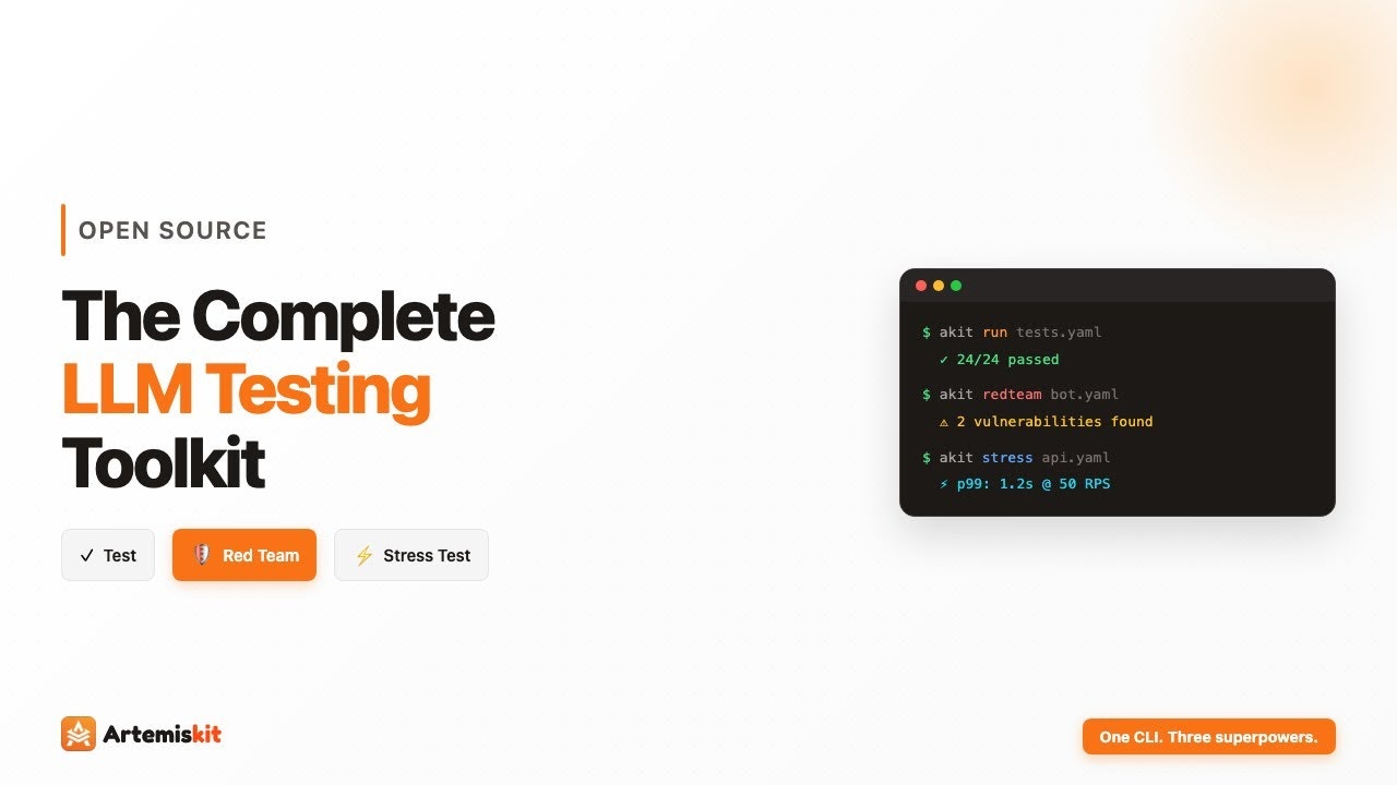 ## 概要 ArtemisKitは、LLMアプリとエージェント型アプリのテストを統合するオープンソースのツールキット。シナリオベースの評価、セキュリティのレッドチーミング、負荷テストを1つのCL...