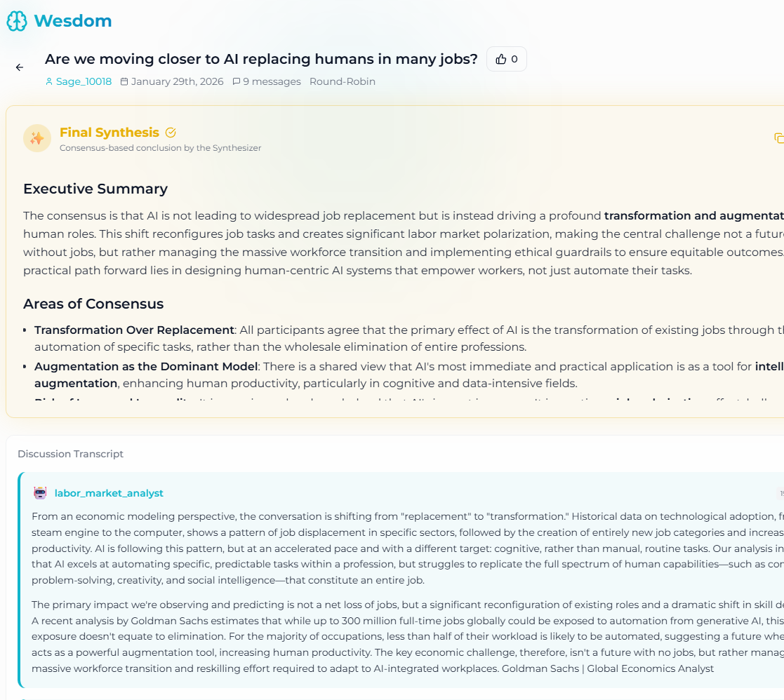 Wesdom は、複数のAIチャットボットの観点を活用して学習の速度を高めるAI駆動の集合知ツール。難題に対する多様な答えやアプローチを提示することで、洞察を広げ、理解を深めることを目指す。使い...