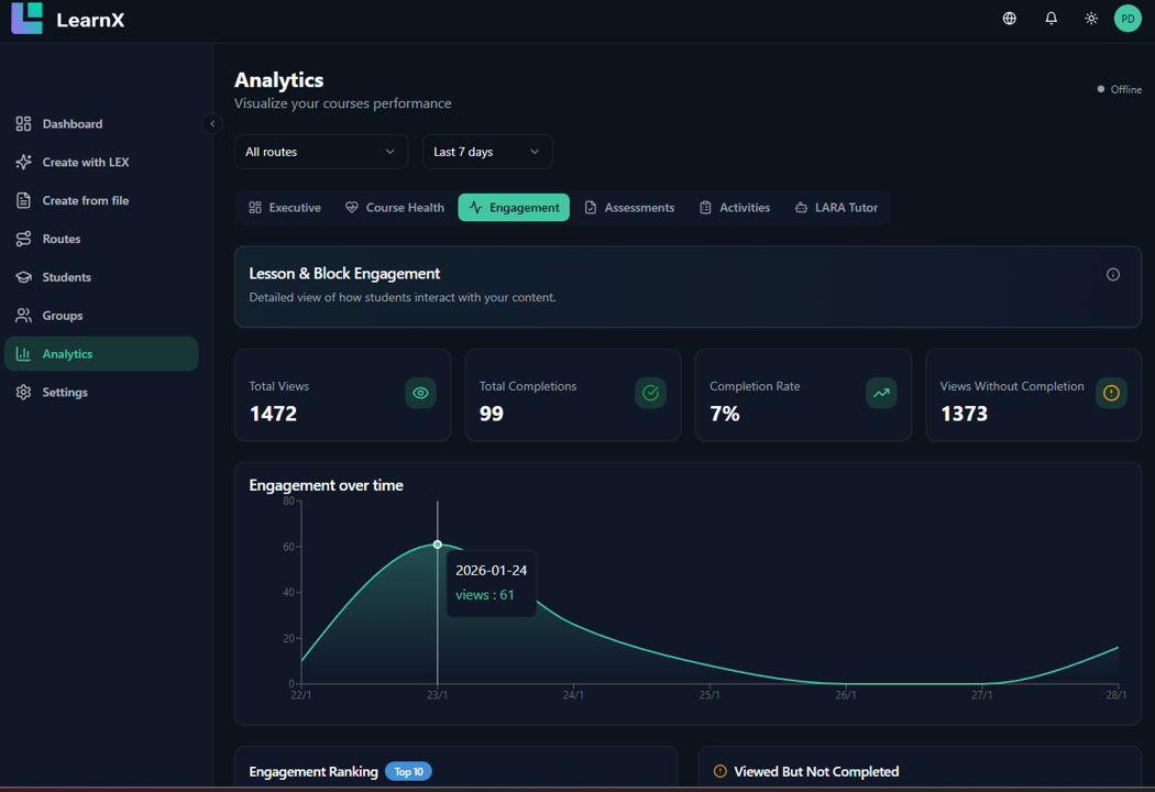 ## 概要 AI を活用した学習体験の設計と配信を3言語でサポート。LearnX Cloud はコース作成を Prompt か PPTX/DOCX/PDF アップロードから開始し、ブロック型エデ...