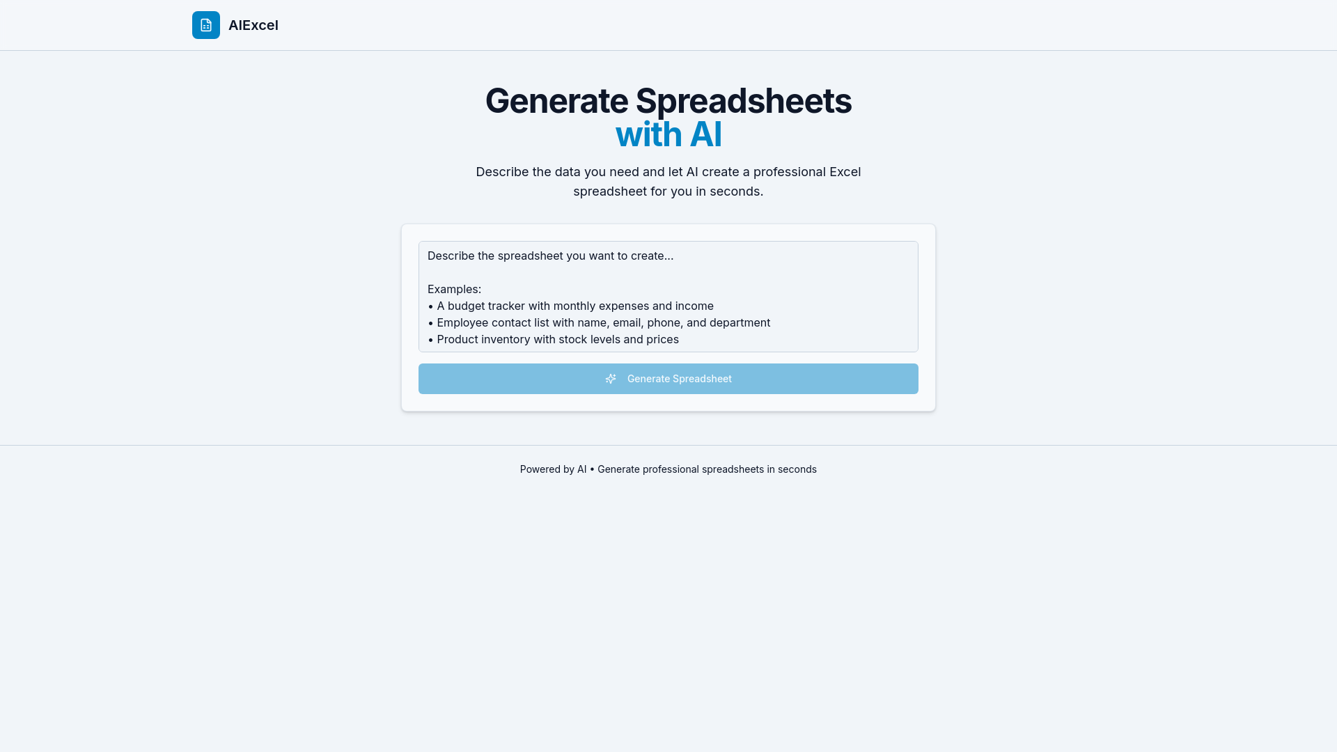 ## 概要 1つのAIプロンプトでExcelのスプレッドシートを作成するソリューション。Lovableで構築されており、複雑な設定を避けて迅速にワークブックを作成することを目指します。 ## ...