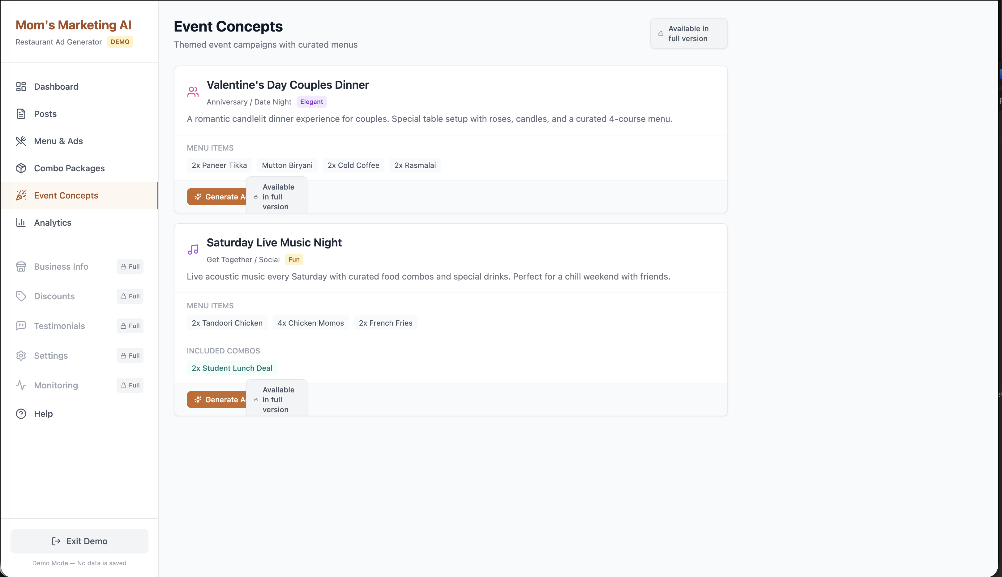 ## 概要 Mom’s Marketing AIは、レストラン広告を自動化するAI搭載ツールです。広告コピーと画像を自動作成し、メニューを理解して宣伝内容を提案。コンボ・イベント広告の作成、Go...