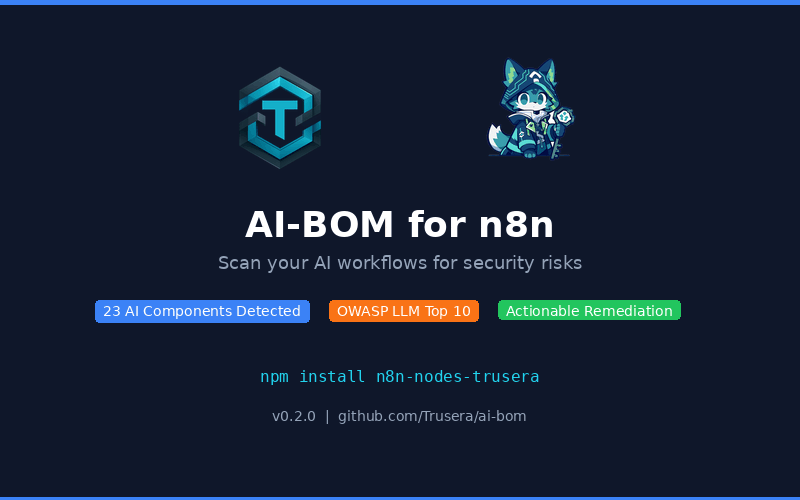 AI-BOMは、AI向けのオープンソースSBOMスキャナーの先駆けです。1コマンドで13種類のスキャナーを実行し、コード・Docker設定・クラウドIaC・Jupyterノートブック・n8nワー...