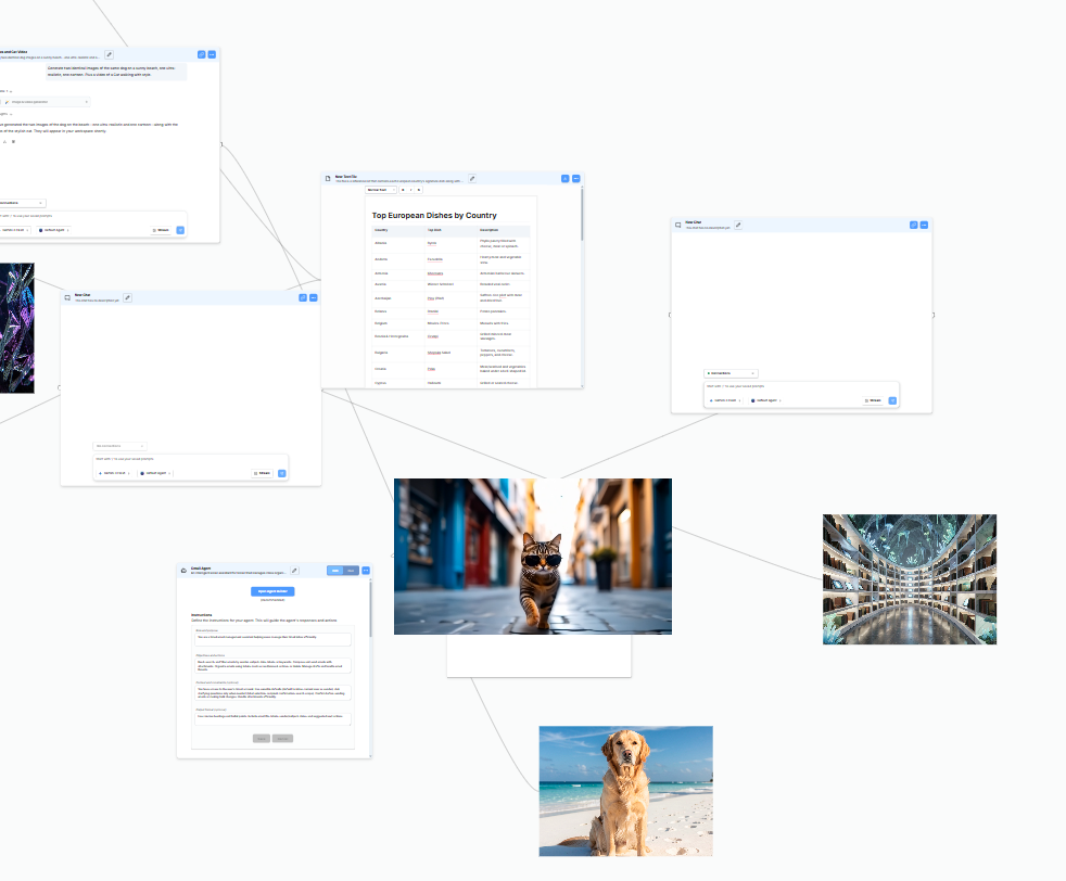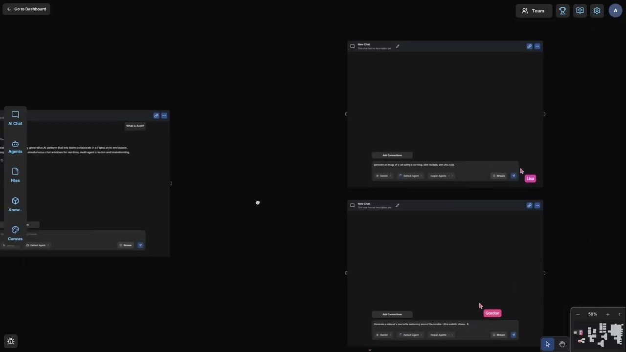AxellはAIとファイルを1つのキャンバスに集約する統合AIワークスペース。Claude、Gemini、ChatGPTなどを同時に横に並べ、会話・ファイル・ナレッジベース・エージェントをドラッ...