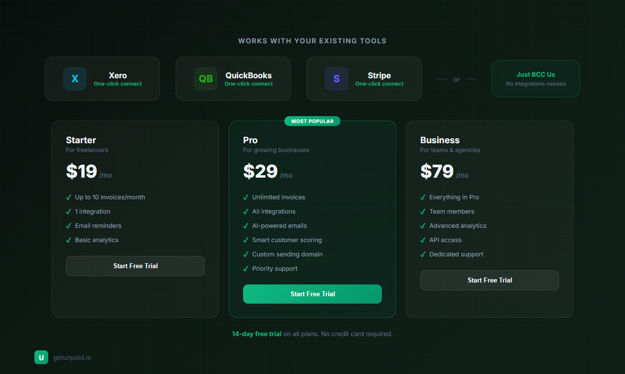 ## プロダクト概要 Unpaid は Xero/QuickBooks/Stripe と連携し、AI作成の請求催促を自動で実行する請求管理ツールです。5段階のエスカレーションで、初期は自動、後半...