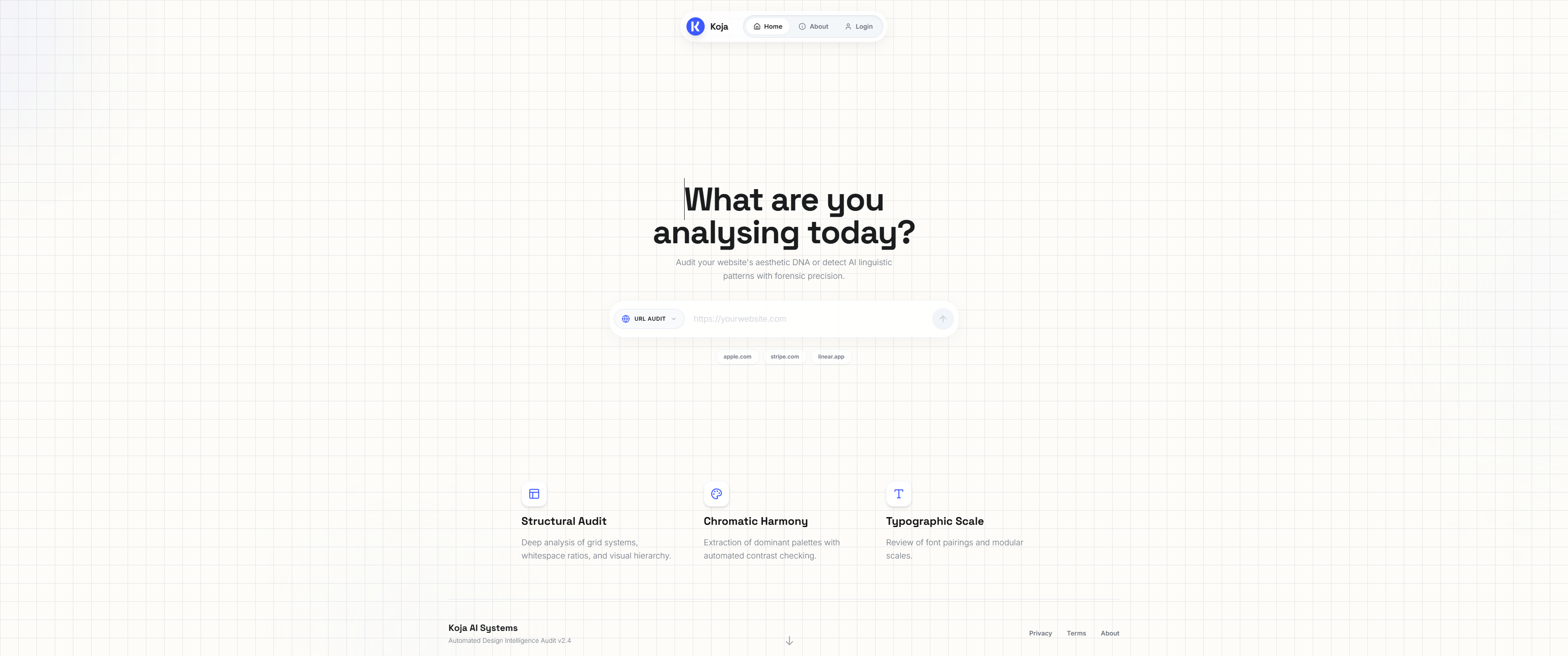 Koja は、ウェブサイトや長文を高速に要約し AI 生成コンテンツを検出する AI コンテンツ分析ツールです。URL またはテキストを貼り付けるだけで、要約とAI検出を同時に提供します。要約は...