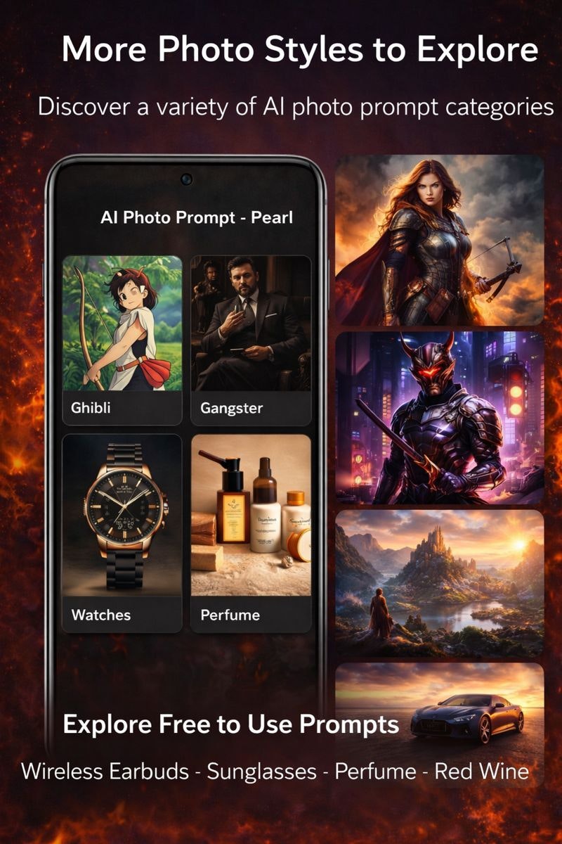 ## 概要 無料で使えるAI画像生成用プロンプト集。現実的な写真生成から芸術的な表現まで、用途別に設計された多数の詳細プロンプトを提供します。 ## 特徴 - ワンタップでコピー可能 - ジャ...