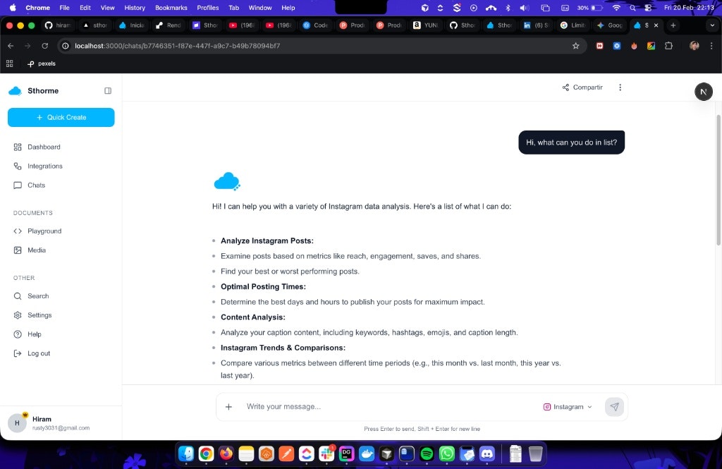 ## 概要 Sthormeは分析を会話形式で返すAIベースのツール。InstagramとFacebookの指標・エンゲージメント・投稿の最適タイミングなどを、シンプルな会話で質問すると即座に洞察...