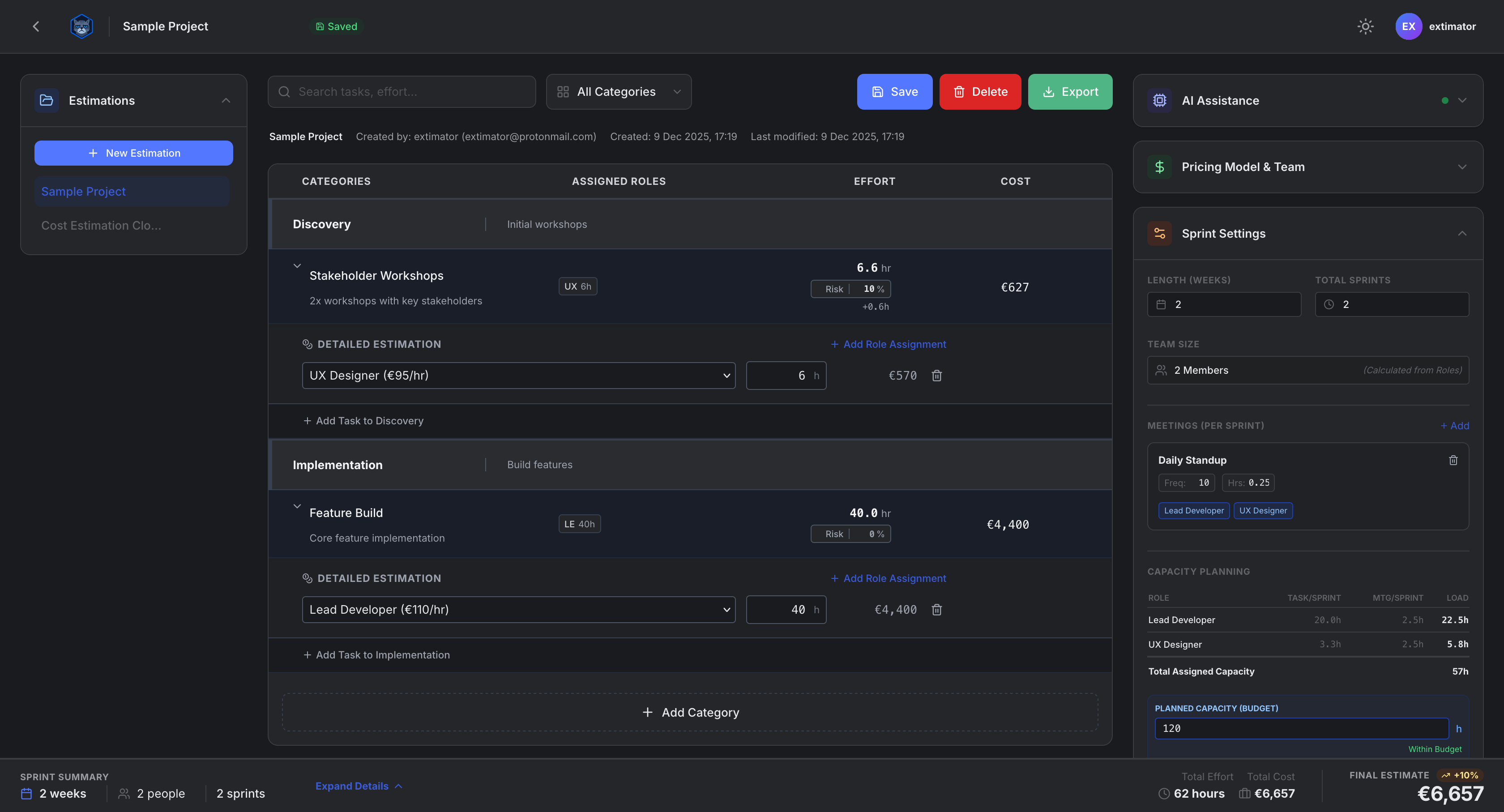 ## 概要 Extimatorは、スプレッドシートの感覚を持つミニマルな見積もりツール。1ページで範囲・費用・スケジュールを計画でき、役割・バッファ・スプリントロジック・オーバーヘッドを追加可能...