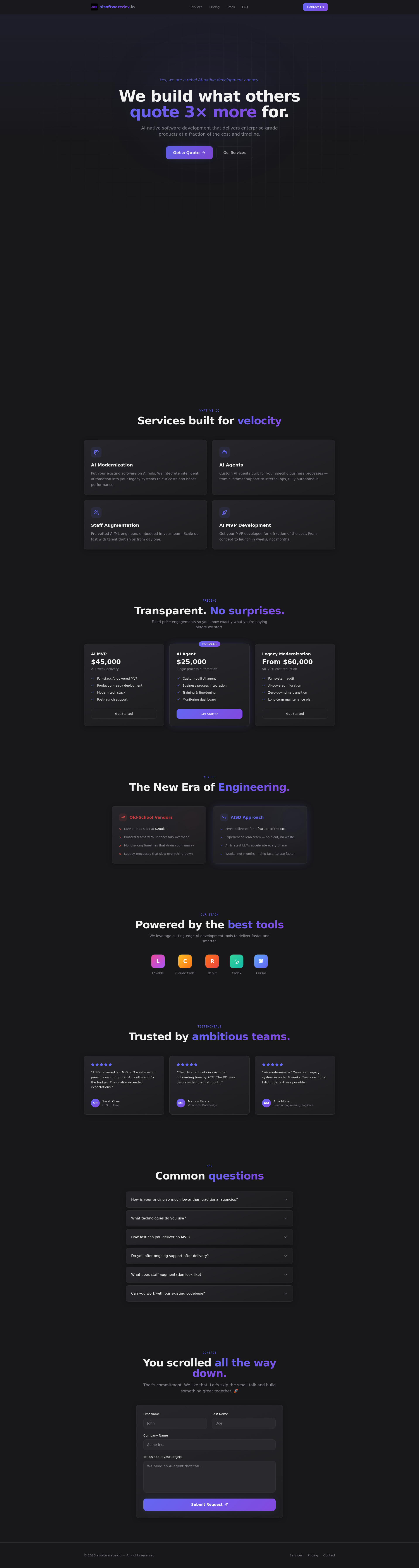 ##概要 - 15年の実務経験を活かし、MVPを5万ドル以下で実現可能と示す - 100% AIネイティブの開発エージェンシーを立ち上げ、AI主導の小規模チームで成果を生み出す ##特徴 - ...