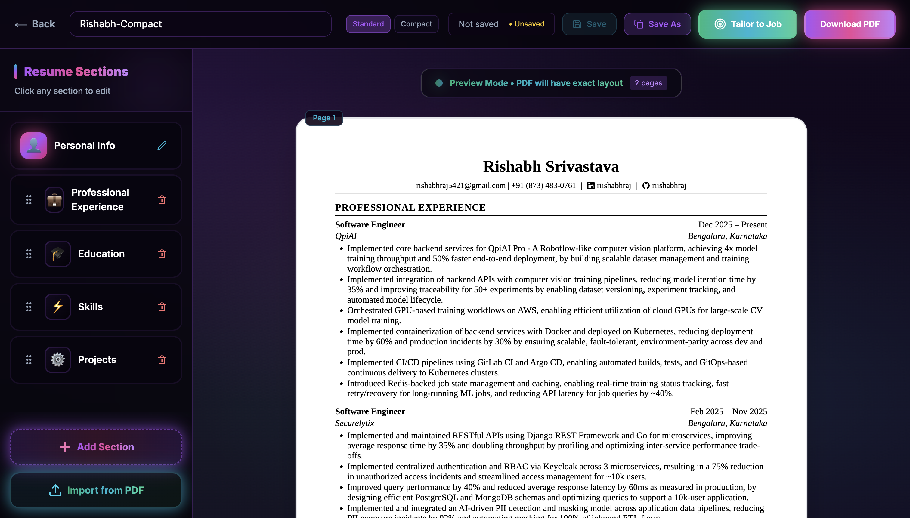 このプロダクトは、AIの力でATSに最適化されたプロフェッショナルな履歴書を数分で作成するツールです。ATS向けの最適化、インパクトのある表現の向上、履歴書の清潔な構成を実現します。著者は、才能...