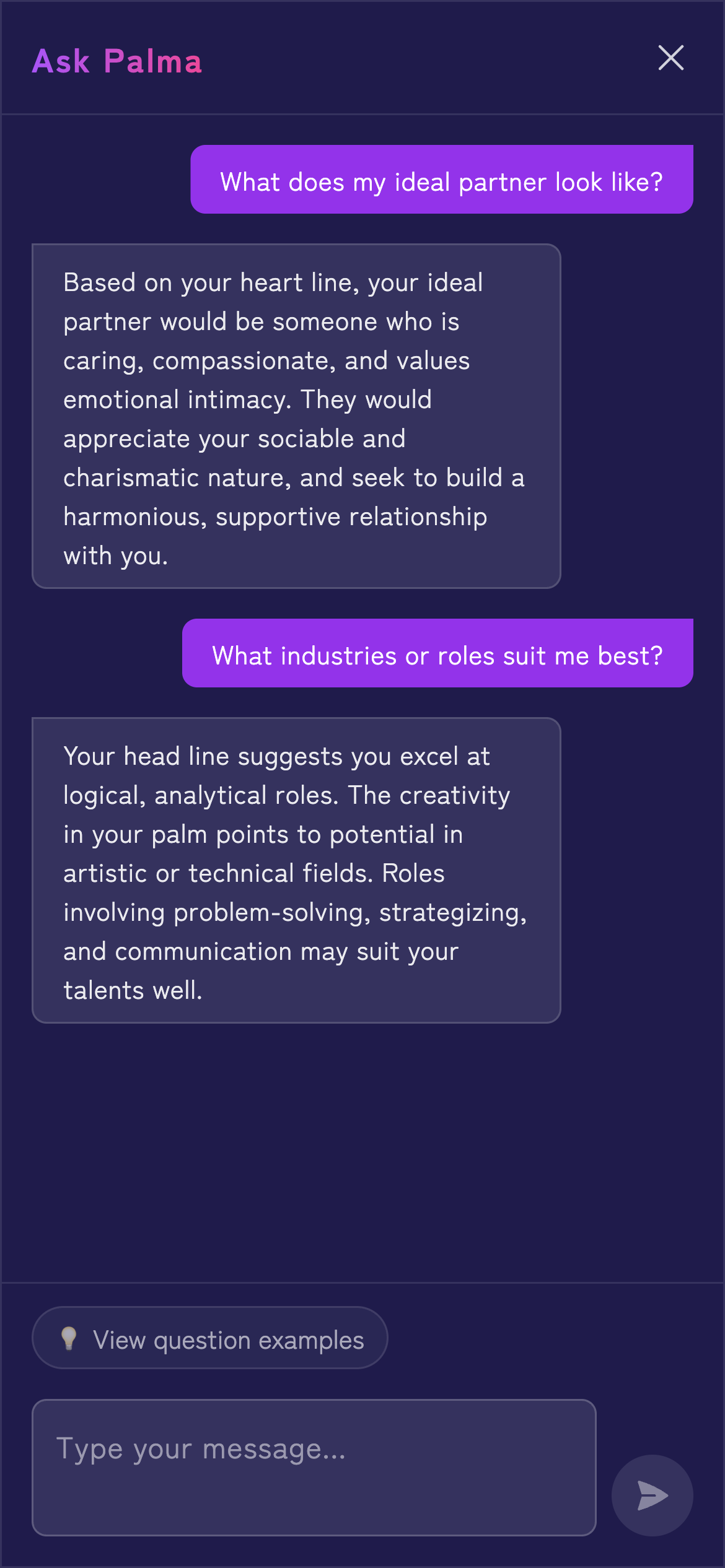 ## Palmaの概要 Palmaは写真から手のひらの線をAIが分析し、愛情・キャリア・性格の洞察を提供する手相アプリです。テンプレートではなく Claude AI のビジョン機能で各線を個別に...