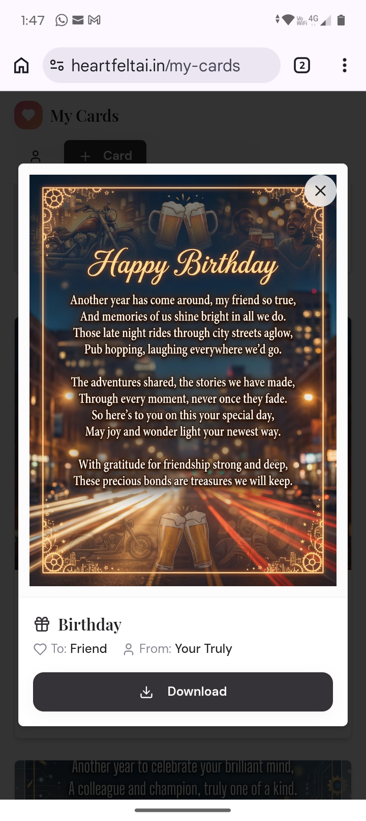 AIが生み出す心温まる祝福メッセージを、数秒でオリジナルカードに。デザインのスキルは不要。愛とAIを組み合わせ、カード画像にあなたの感情を80語で表現する新しいギフト体験。