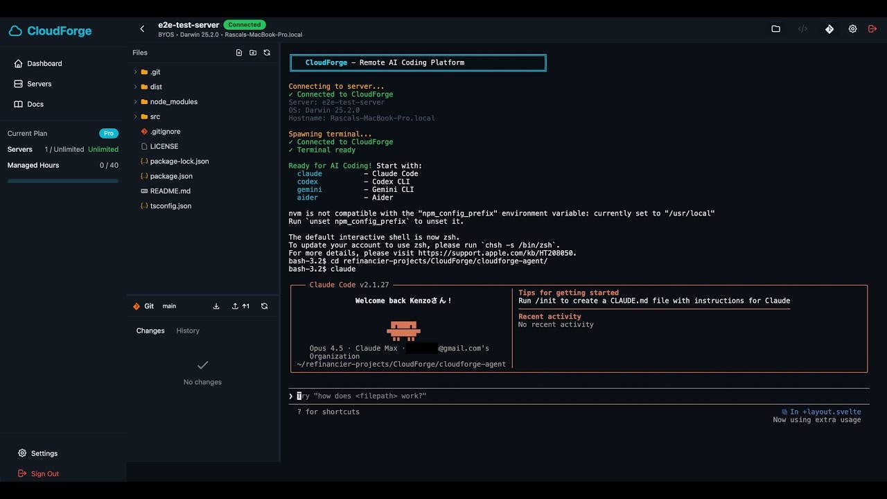 ## 概要 CloudForgeは、スマホなどの任意デバイスからClaude Code / Codex CLI / Gemini CLIなどのAIコーディングCLIを実行できるリモートAIコーデ...