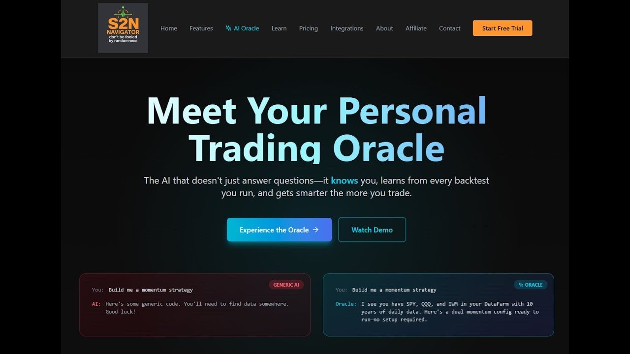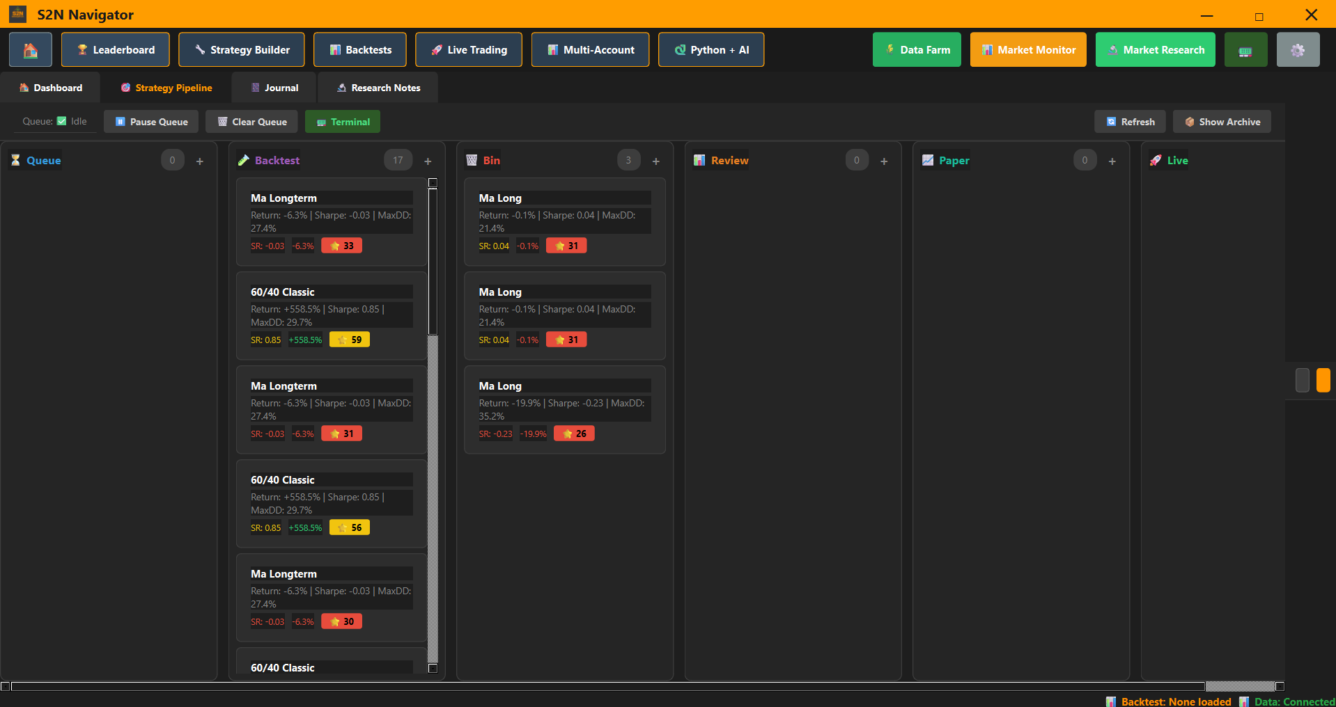 ## 製品概要 S2N Navigatorは、真実を重視するトレーダーのための専門的な調査・パフォーマンス分析プラットフォームです。バックテスト・実取引・ポートフォリオデータを1つのワークフロー...
