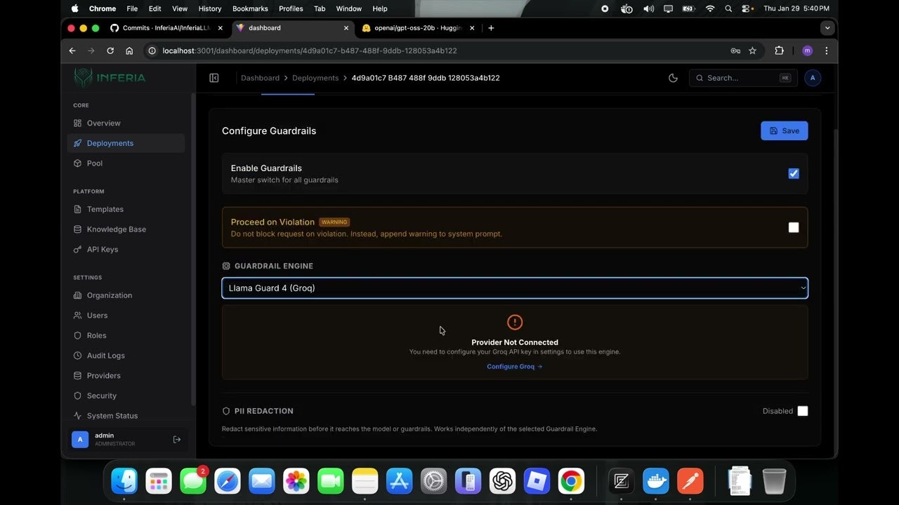 ## 概要 InferiaLLM は、本番環境での LLM 推論運用を一つの OS に統合したプラットフォームです。生の LLM を実ユーザーへ提供するために必要な認証管理、推論プロキシ、スケジ...