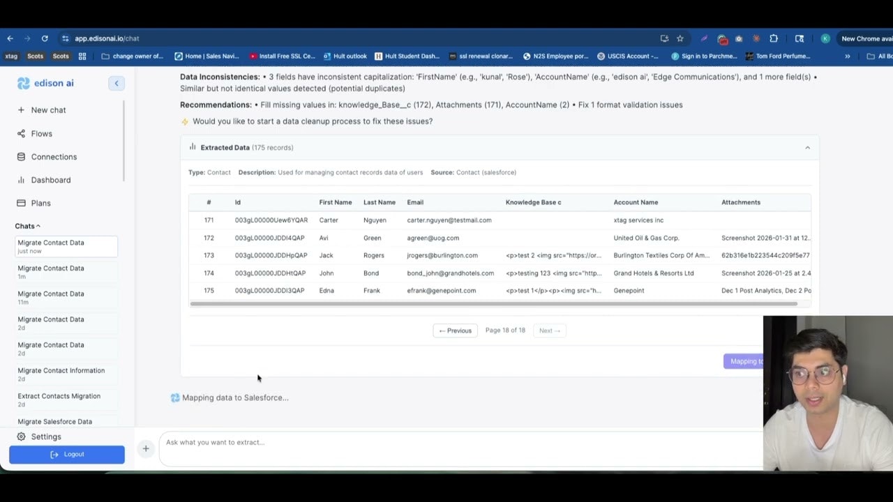 ## 概要 Edison AIは、自然言語の平易な指示だけで、システム間のデータ移行・クリーニング・変換・同期を実現するデータアーキテクト。ファイル・データベース・Salesforce・Goog...