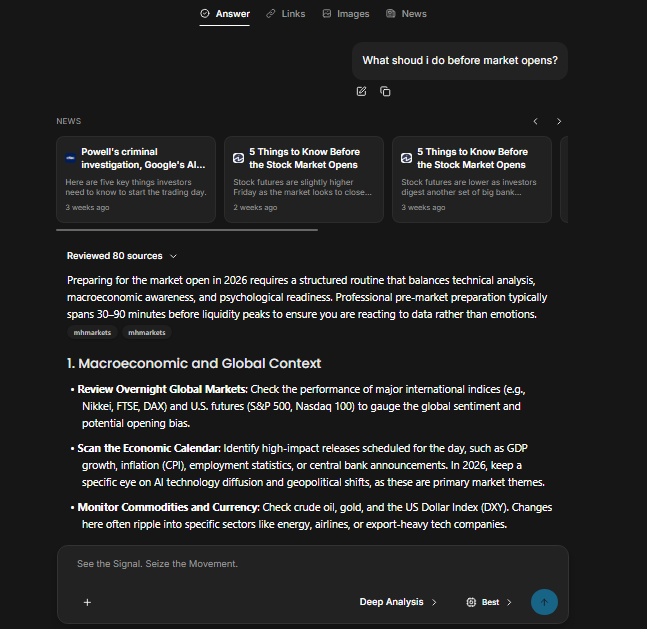 リアルタイムのAI市場調査 + トレーダー向けのチャートシグナル
