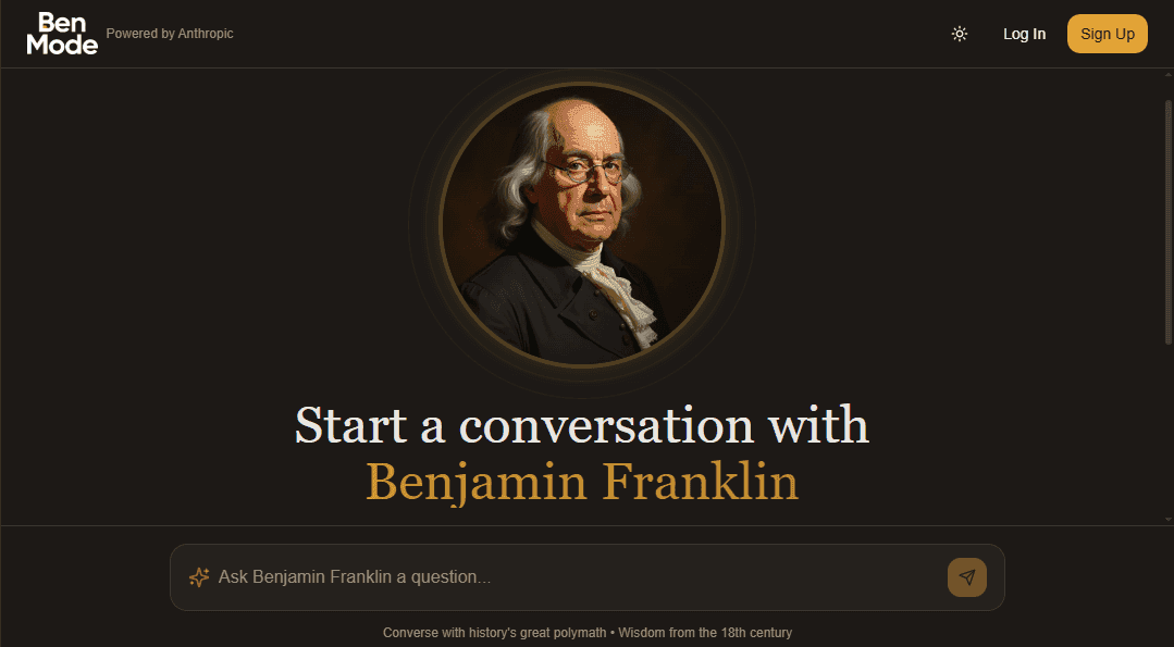 ## 概要 ベンジャミン・フランクリンとリアルタイムで対話できる体験。ユーモアと倫理・哲学の視点を取り入れつつ、現代の問題に対して彼の観点から回答を提供します。β版として公開中で、対話の面白さと...