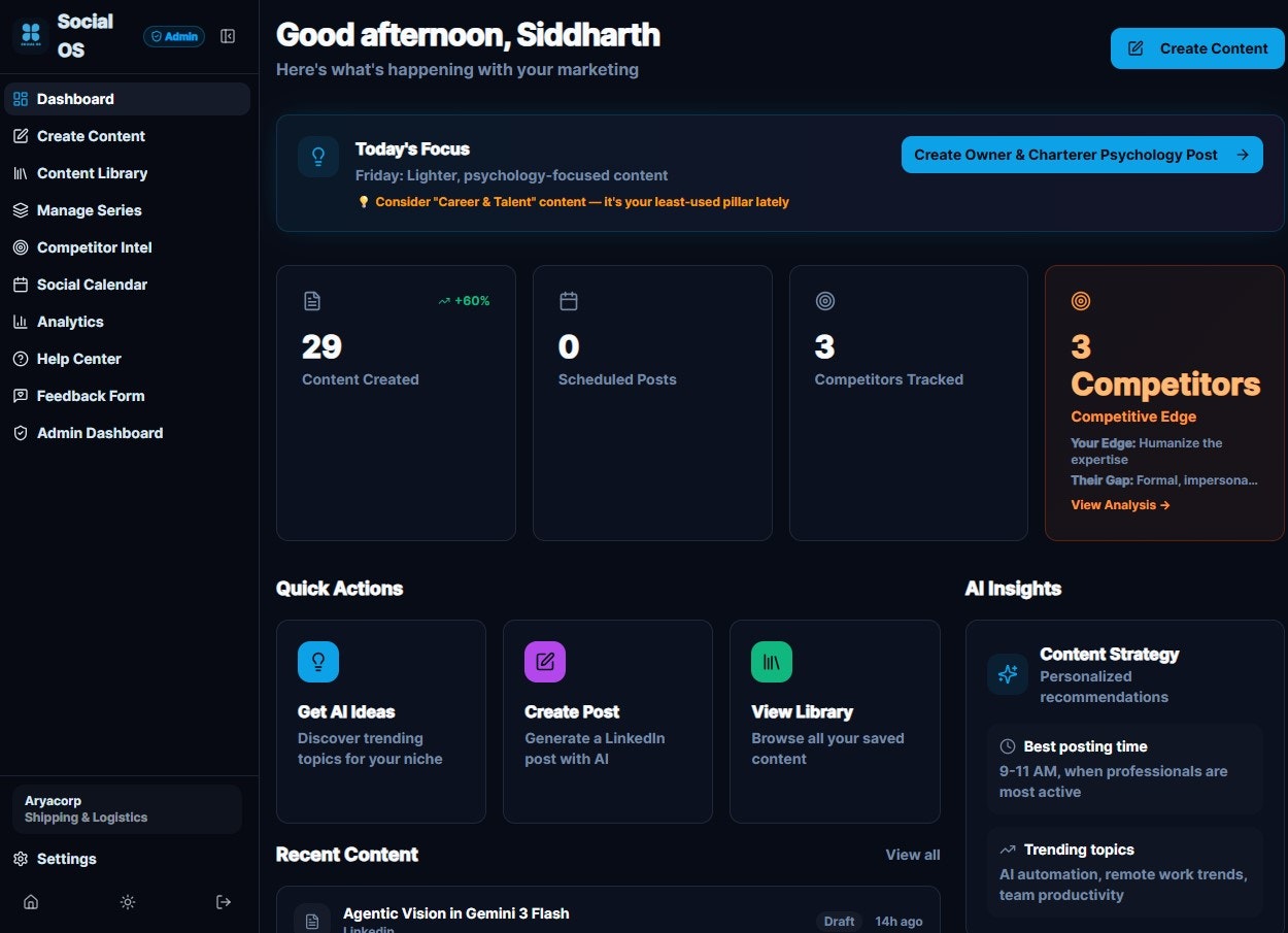 ## 概要 Social OS は LinkedIn 専用の AI コンテンツ作成ツールです。アイデアをあなたの声で投稿へ翻訳し、テンプレートや一般的なAIトーンに頼らず、30秒程度の入力で自然...