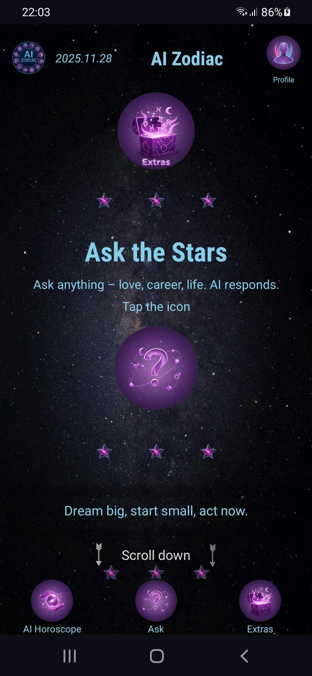 AI ZodiacはAIを活用した個人向け占星術アプリです。生年月日を入力すると、日常・週次・長期のライフタイムに沿ったホロスコープと洞察を提供します。Android向けの使いやすい体験で、自己...