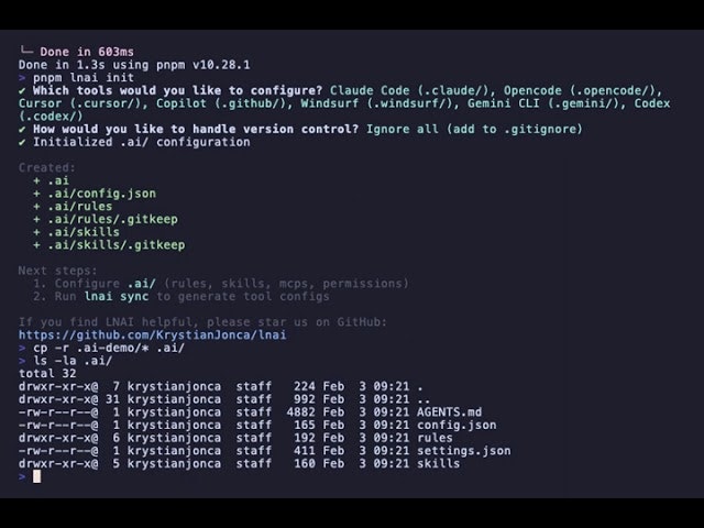 ## 概要 - すべてのAIコーディングツール用の設定を1つのディレクトリで管理 - `.ai/` に定義した設定を Claude Code、Cursor、Copilot、Gemini CLI、...