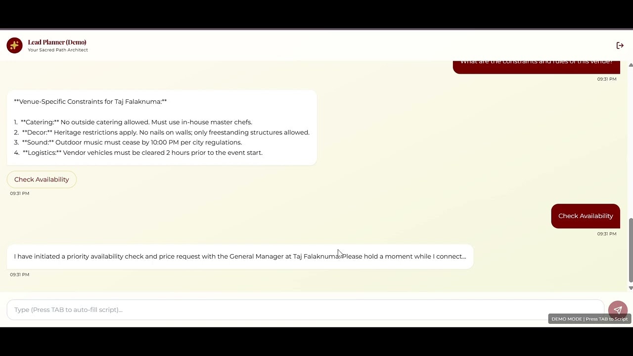 sanskaraai-agent はインドの伝統結婚式を計画するAIです