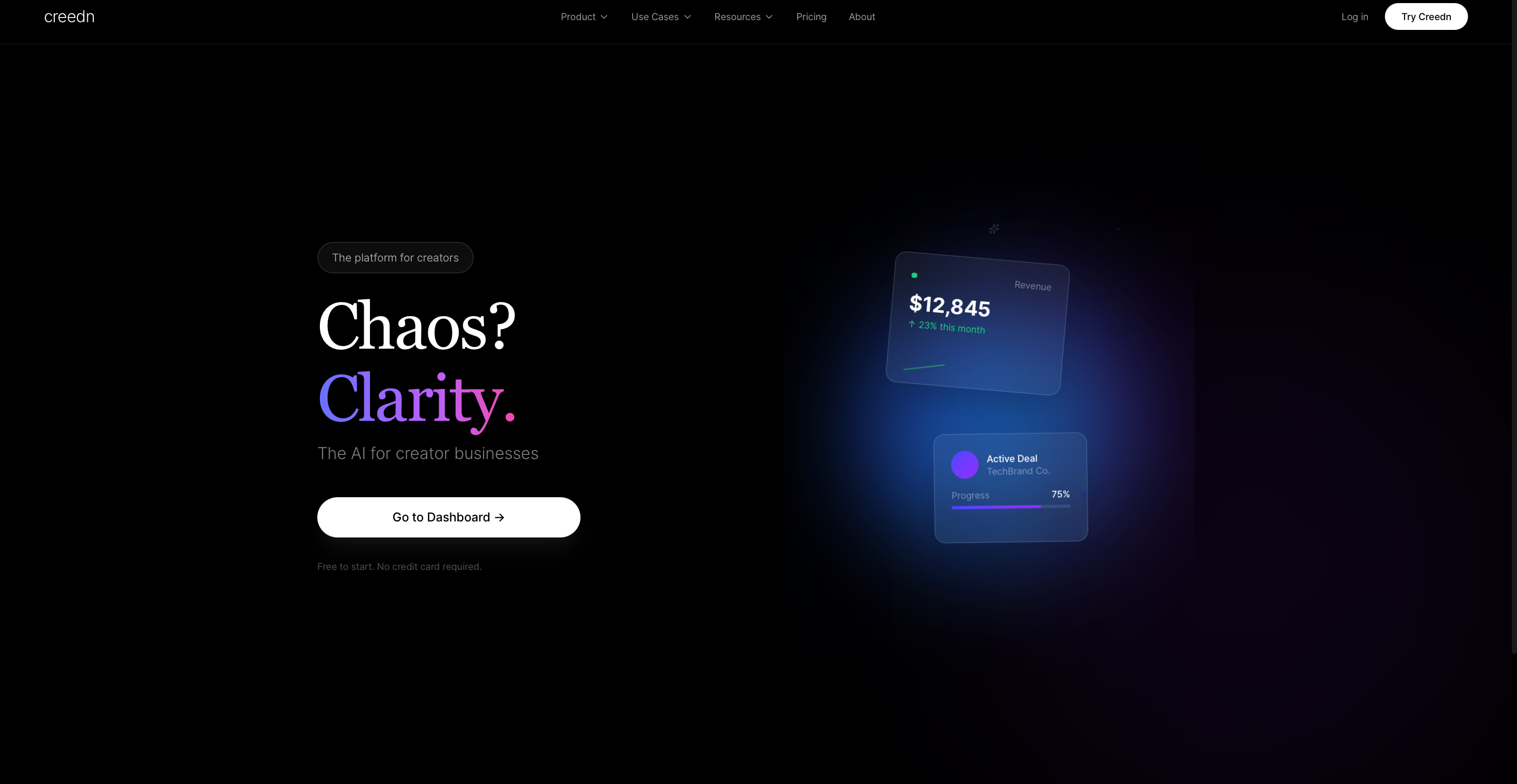 ## 概要 Creednはクリエイター向けのAI搭載オールインワンOS。収益追跡、AI契約分析によるブランド案件管理、メール生成、詐欺検知、コンテンツカレンダー、分析を統合表示を1つのダッシュボ...