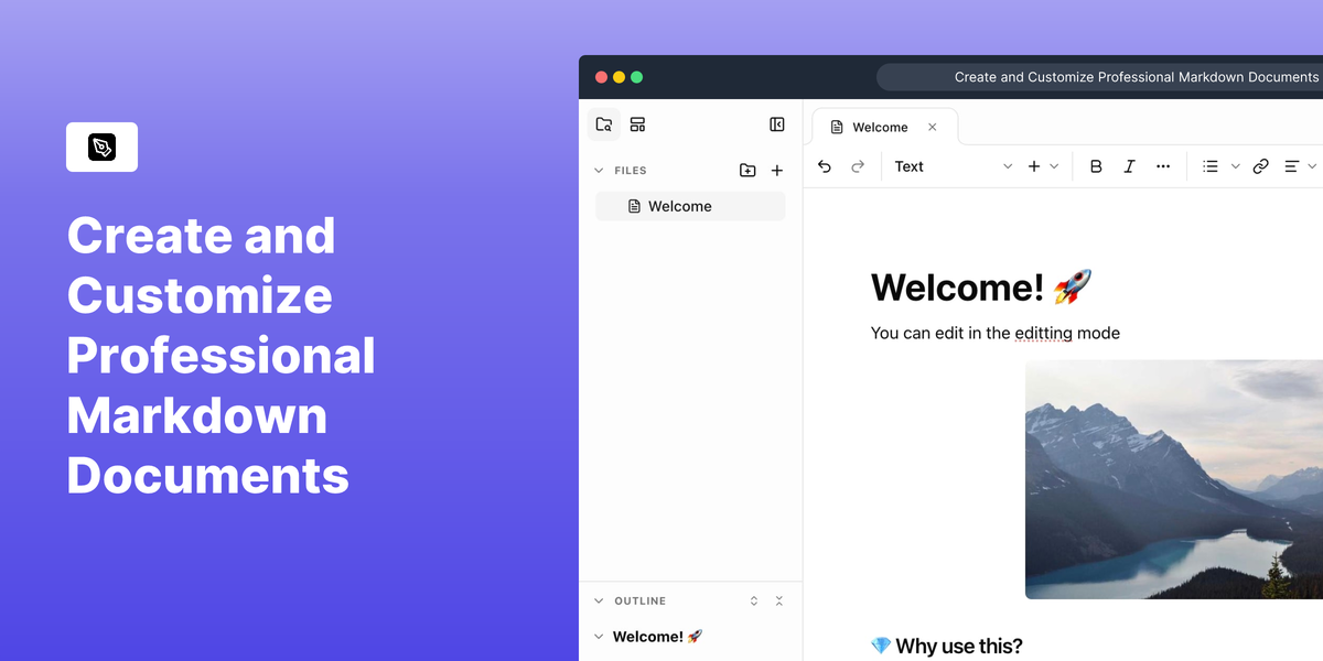 AI支援Markdown-PDFエディターの概要:Web/Desktop対応、ローカルファーストのプライバシー重視、内蔵AIアシスタンスで下書き・改善、Raw Markdownとビジュアルモード...