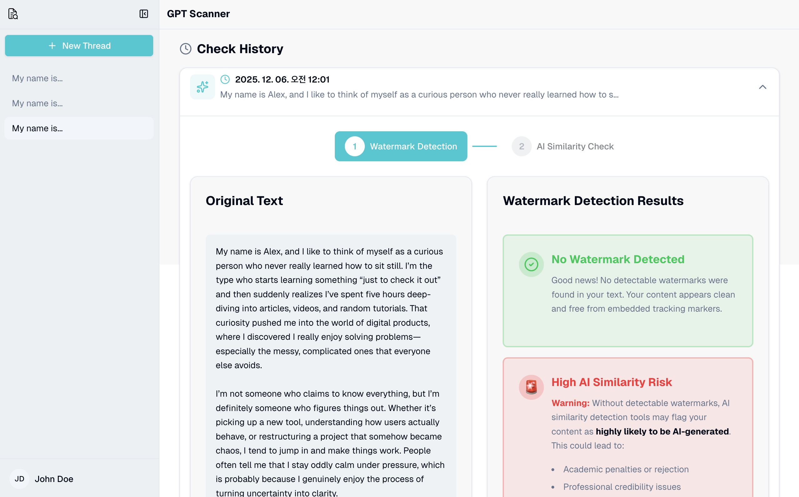 ## 概要 - AIテキスト検出に特化したツールで、ChatGPT、Claude、Geminiの出所を高精度に特定 - 無料透かし除去と高度な検証機能を提供 - リアルタイムリスクスコアとワンク...