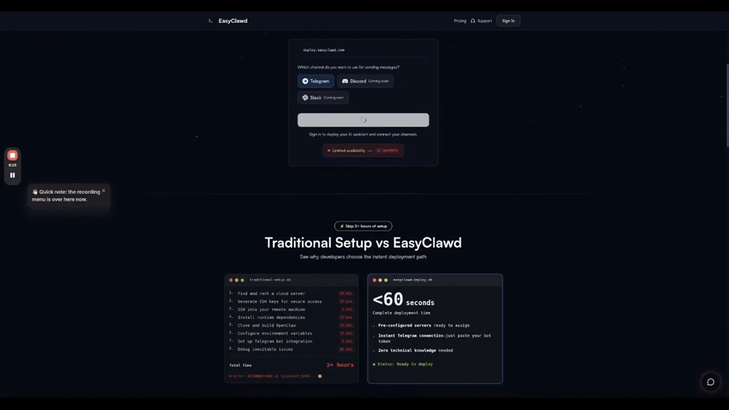 ## 概要 - 専用のセキュアな OpenClaw VPS を数秒でデプロイ。ワンクリックの AWS セットアップと Telegram トークンの貼り付けだけで開始。 - 完全サンドボックス化...