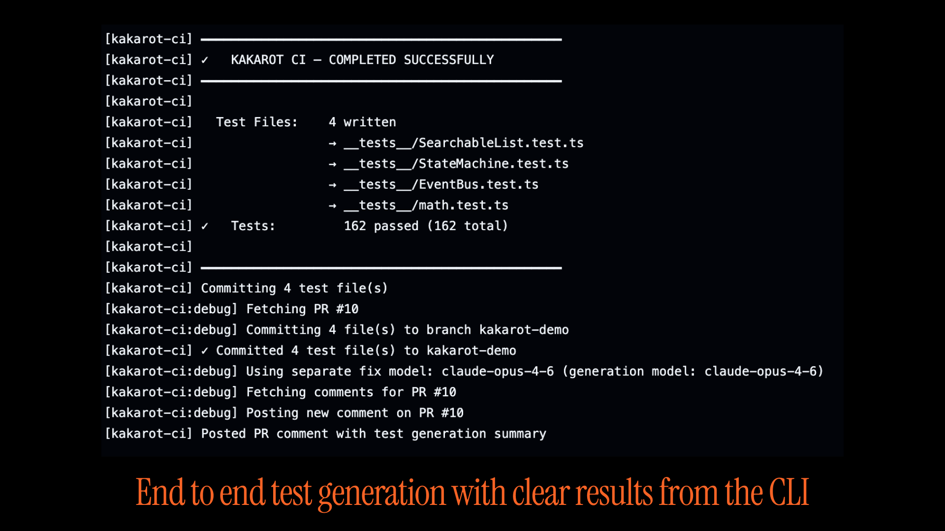 ## 概要 - 実際に動くユニットテストを自動生成・実行。コピー&ペーストや修正の手間を削減 - AST分析で変更された関数を検出し、正確な Jest/Vitest テストを作成 - テストは実...
