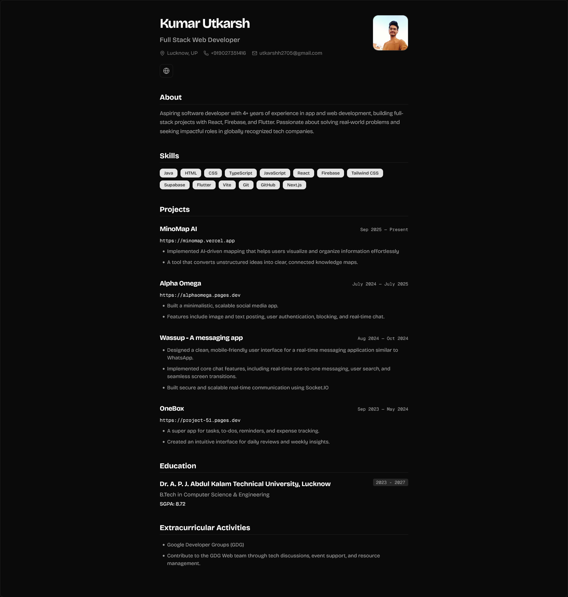 履歴書を数秒でプロフェッショナルなウェブサイトに変換