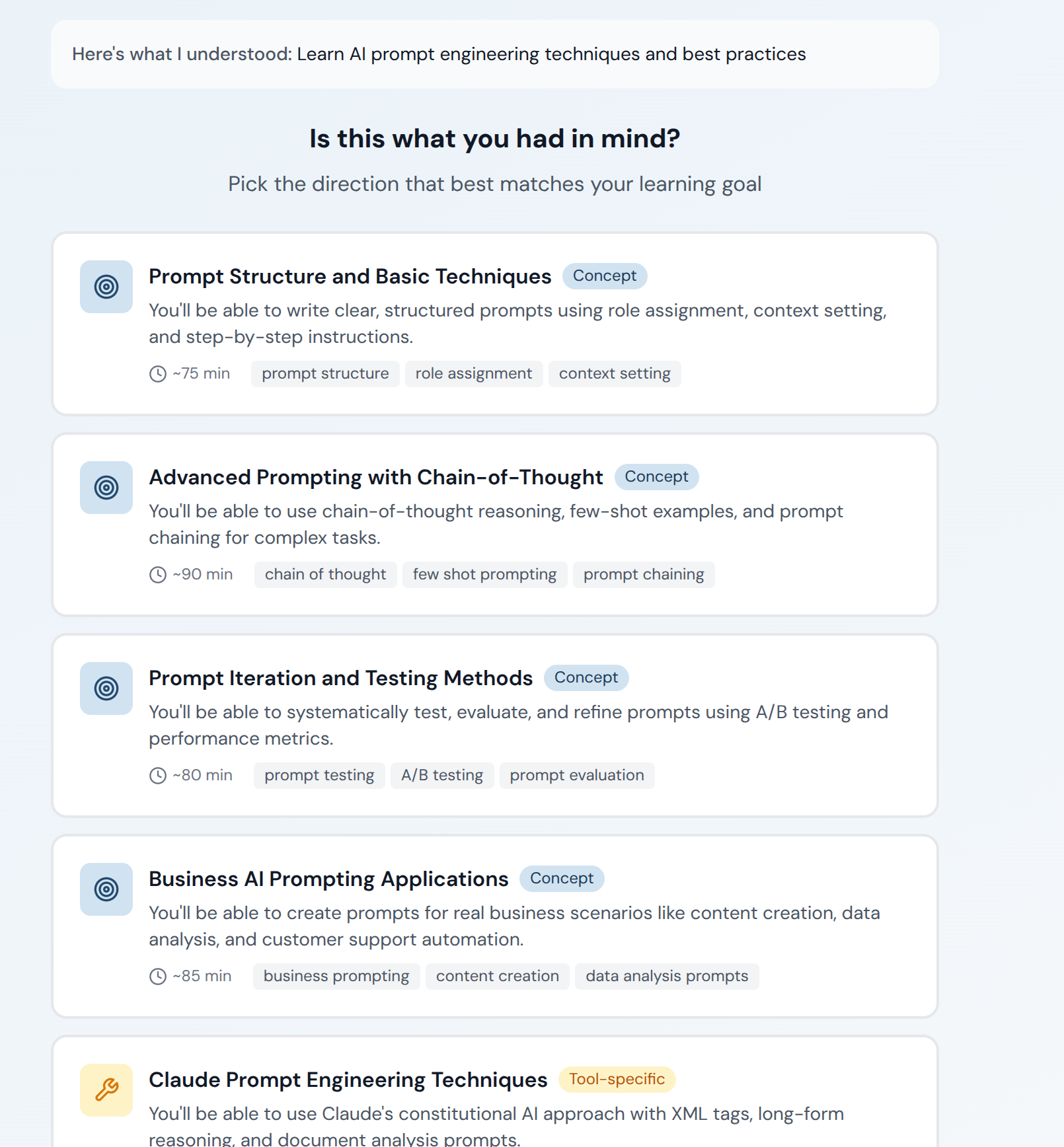 このプロダクトは、知識を単に提供するのではなく、理解から実践へと移行させることを目的とした学習支援ツールです。構造化されたループとフィードバックを用いて、アイデアやニッチな知識を小さく実行可能な...
