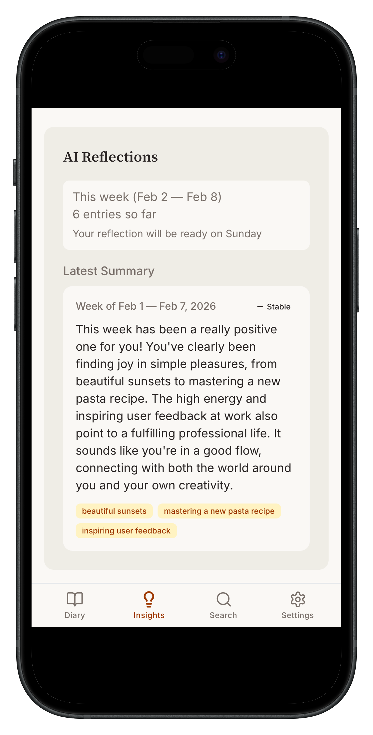 毎日、数語を書くだけ。AIがあなたのパターンを返してくれる。