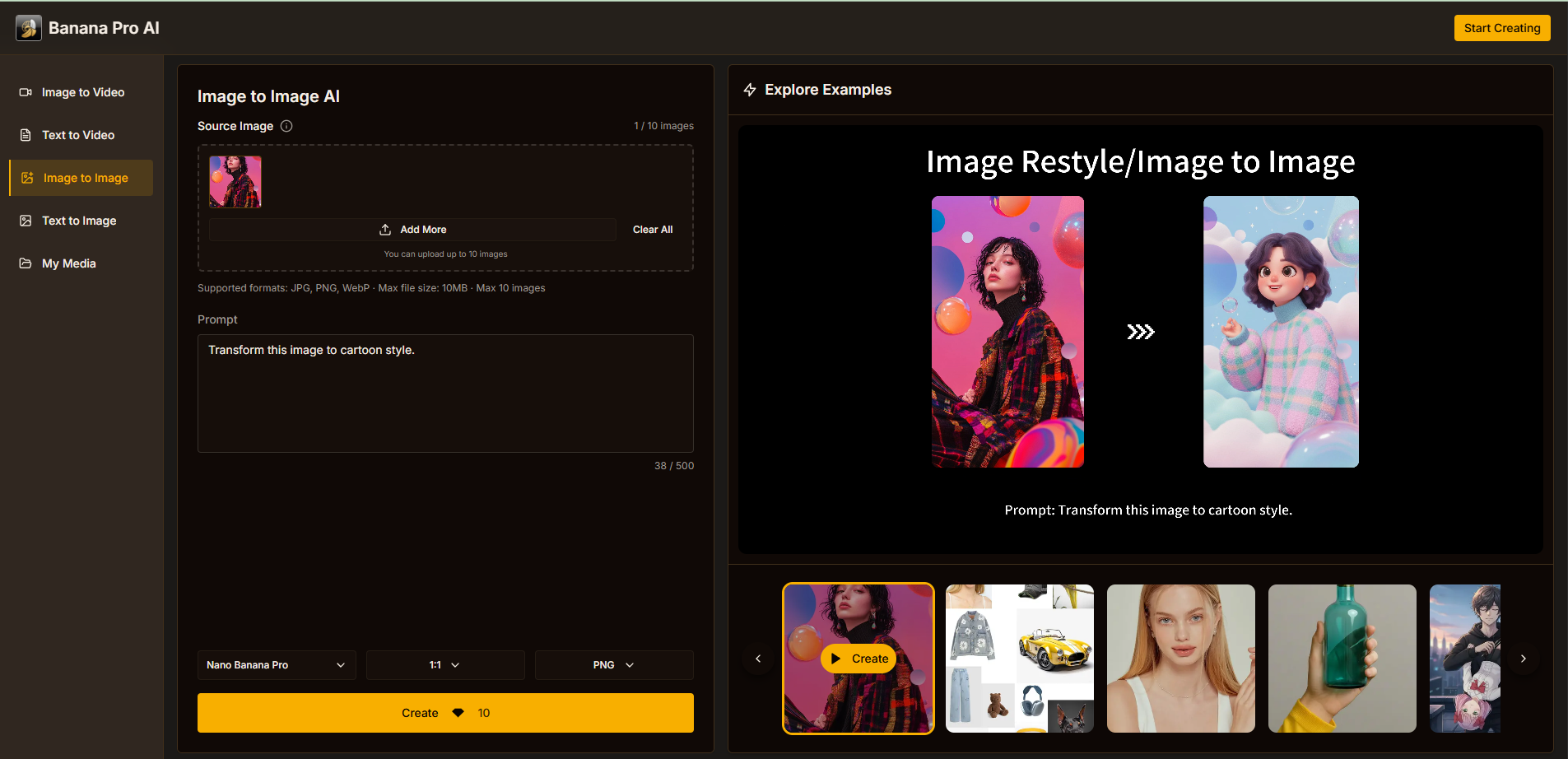 Banana Pro AIは、テキストや画像を出発点にAIが高品質な画像と動画を一括生成・変換できるオールインワンのクリエイティブプラットフォームです。テキストから画像を生成、画像をAIで変換、...