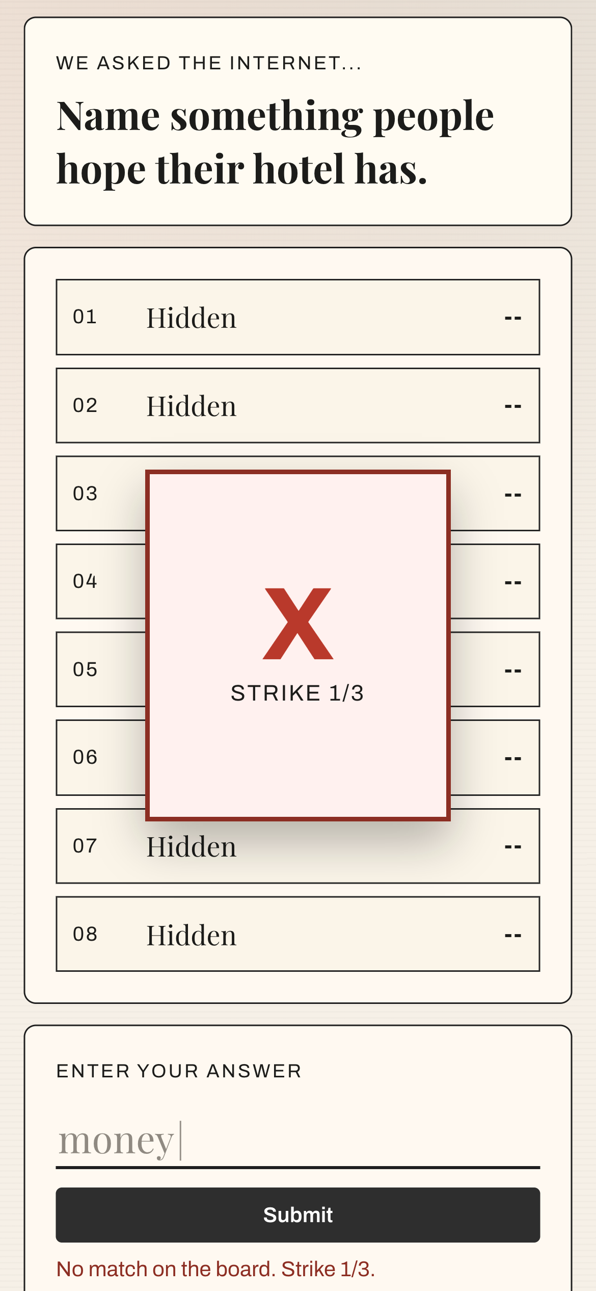 Internet Feud is a daily crowd-guessing game presented like a small online newspaper. Each day th...