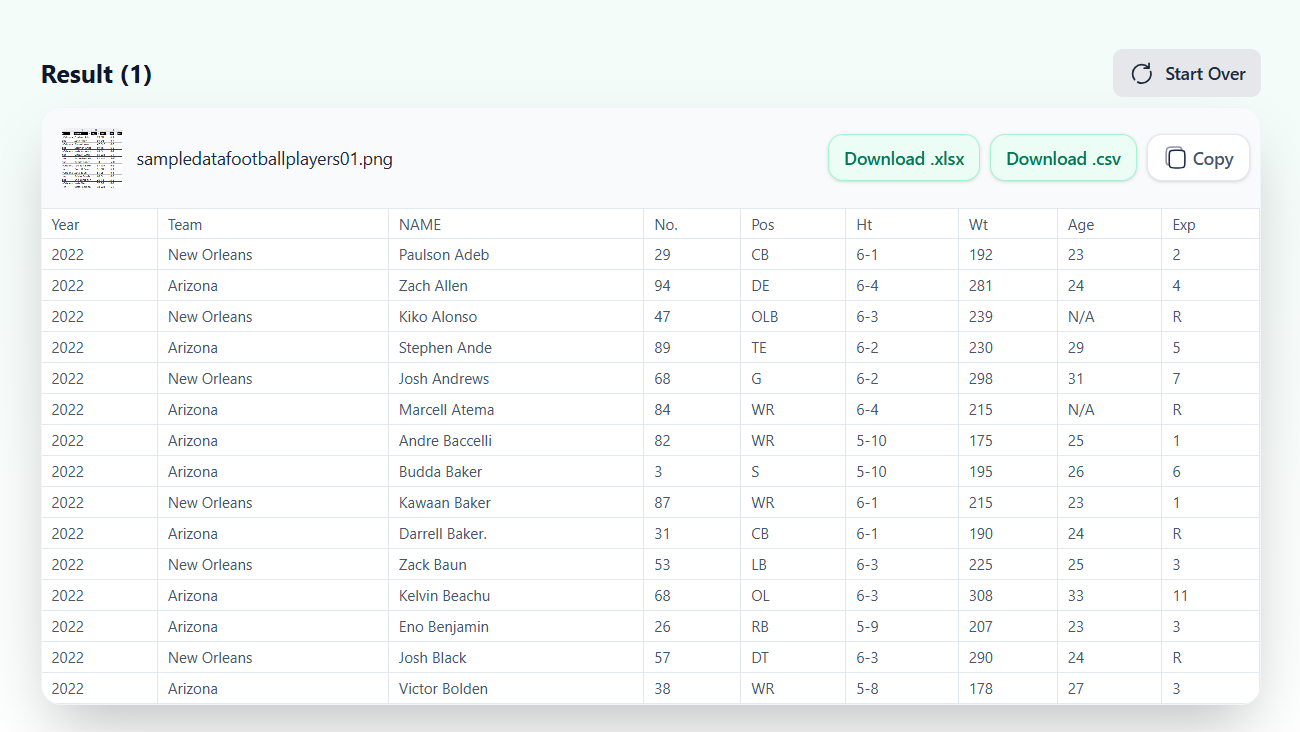 Convert JPG images into editable Excel sheets using AI OCR