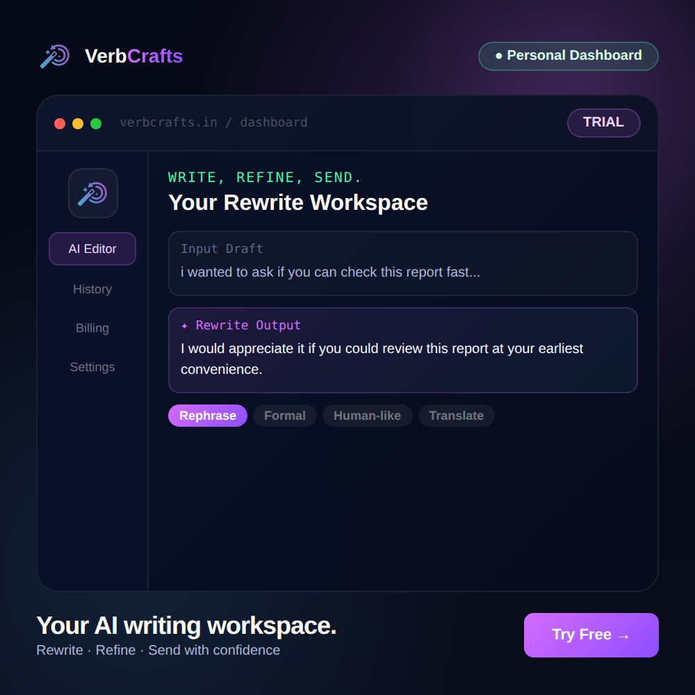 Hey Product Hunt! I’m Mayur Patwa, founder of VerbCrafts. I built VerbCrafts because rewriting te...