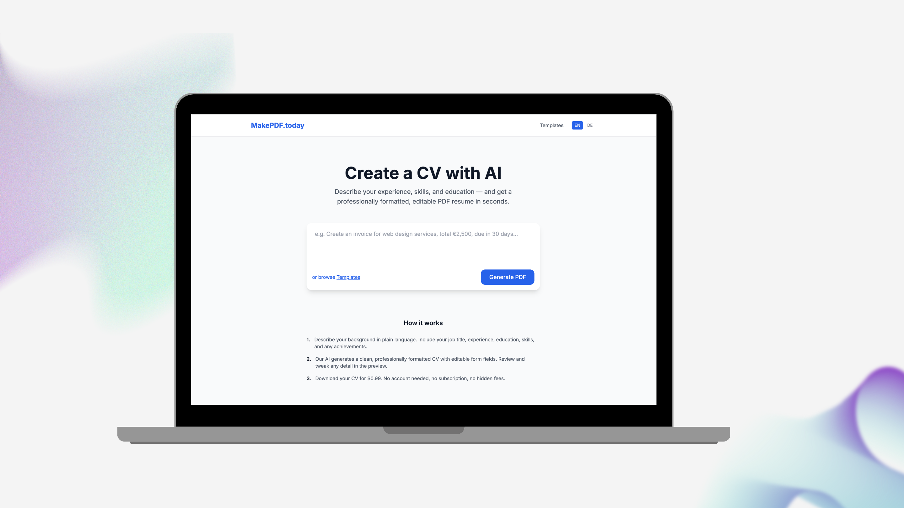 Describe any document, get an editable PDF in seconds