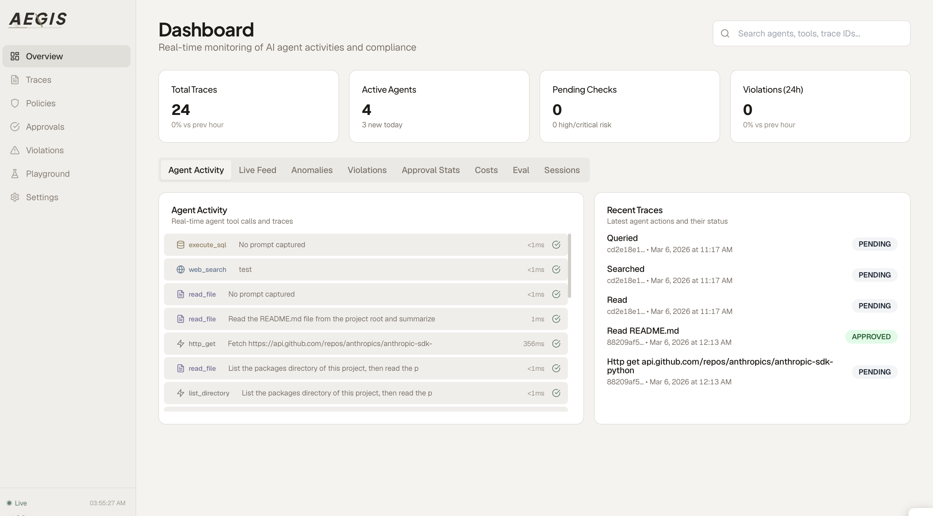 Runtime policy enforcement for AI agents. Cryptographic audit trail, human-in-the-loop approvals,...