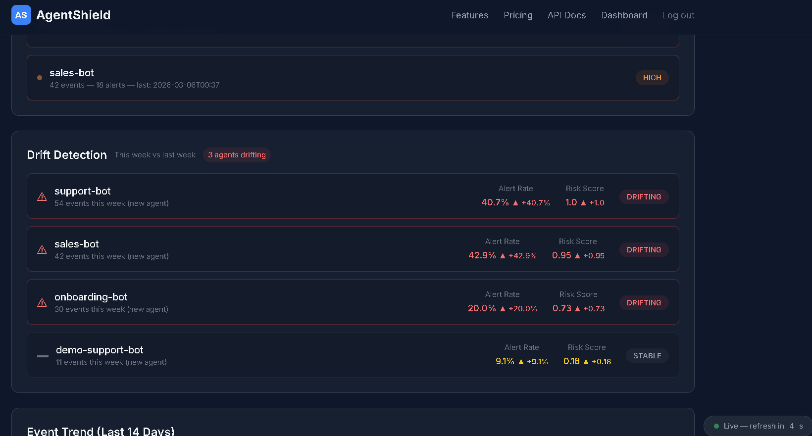 Angular 21 AI agent monitoring dashboard—dark,fast real-time