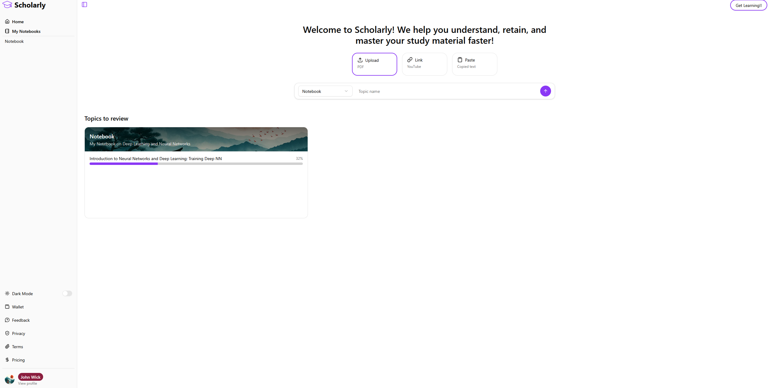 Scholarly is an AI-powered learning platform that turns any study material into personalized stud...