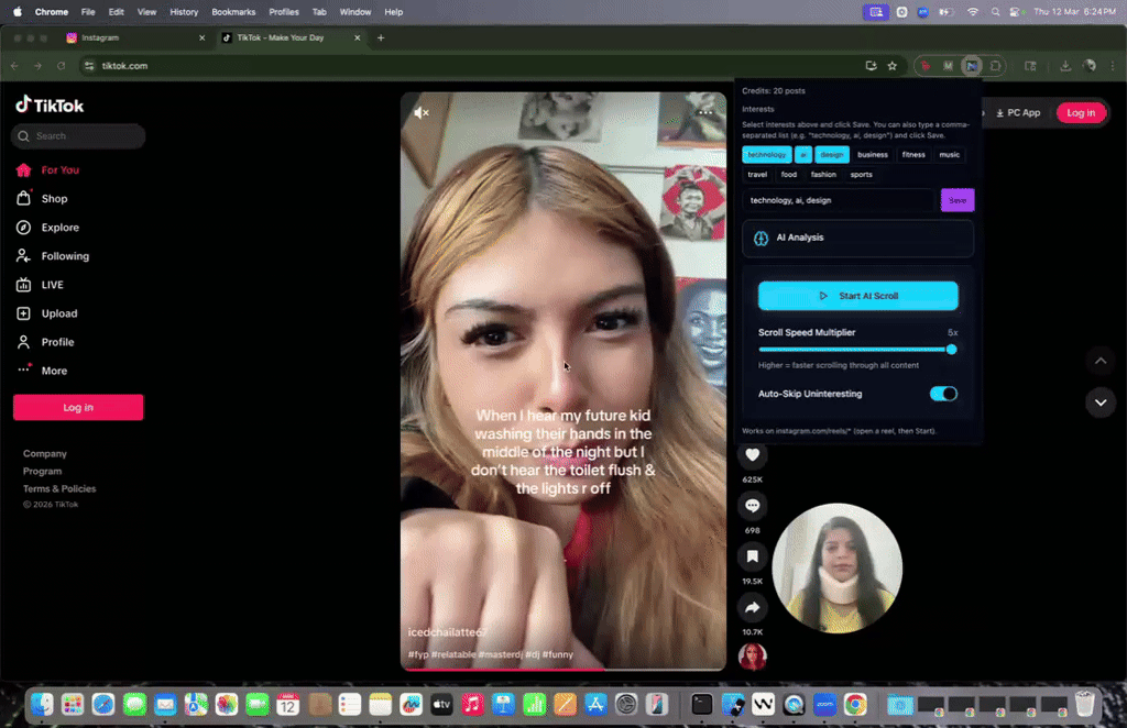 AI-powered scrolling agent that saves you time by scrolling through social media content.