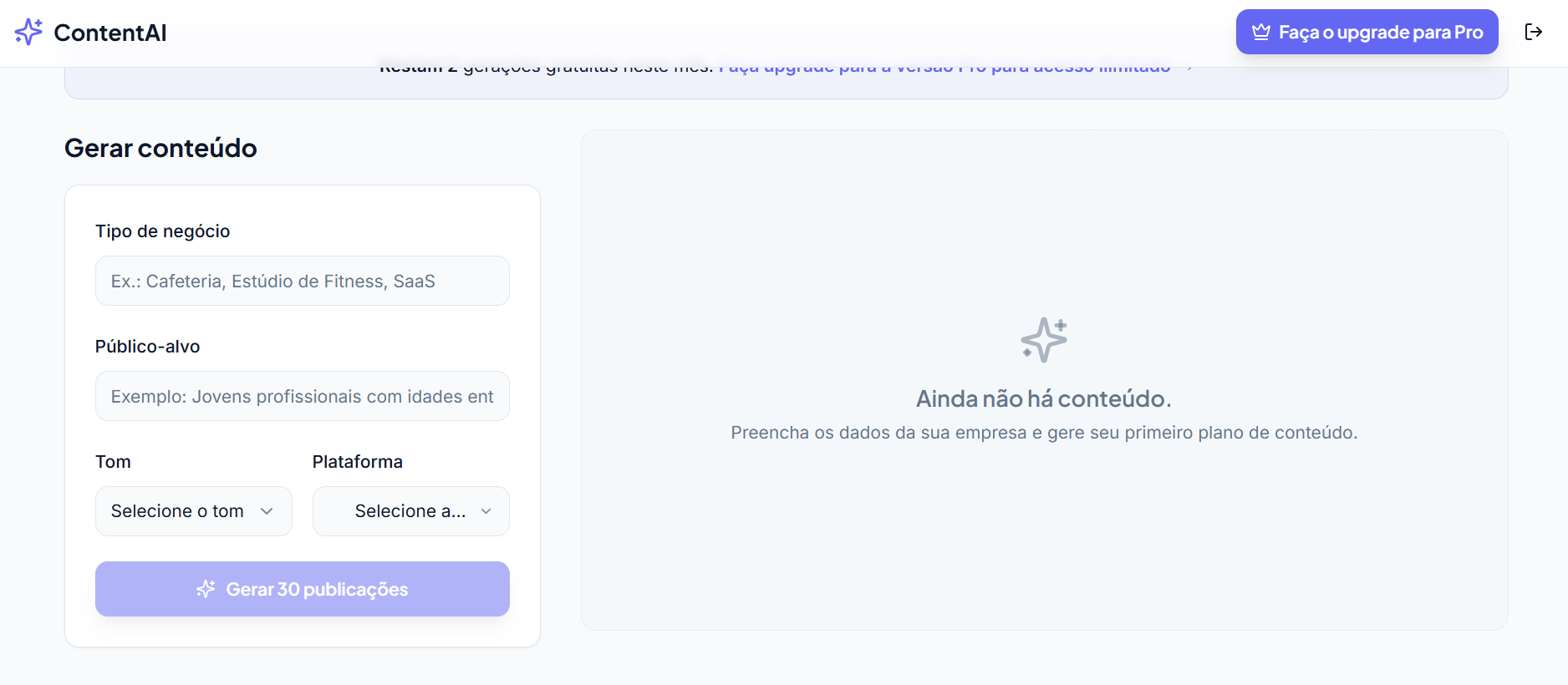 Um app que usa IA para gerar ideias de posts, legendas e roteiros de conteúdo para comerciantes d...