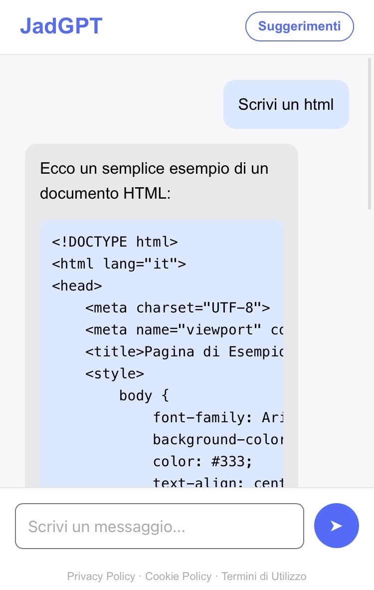 JadGPT è un’interfaccia di chat AI gratuita, veloce e in italiano. Niente registrazioni, niente a...