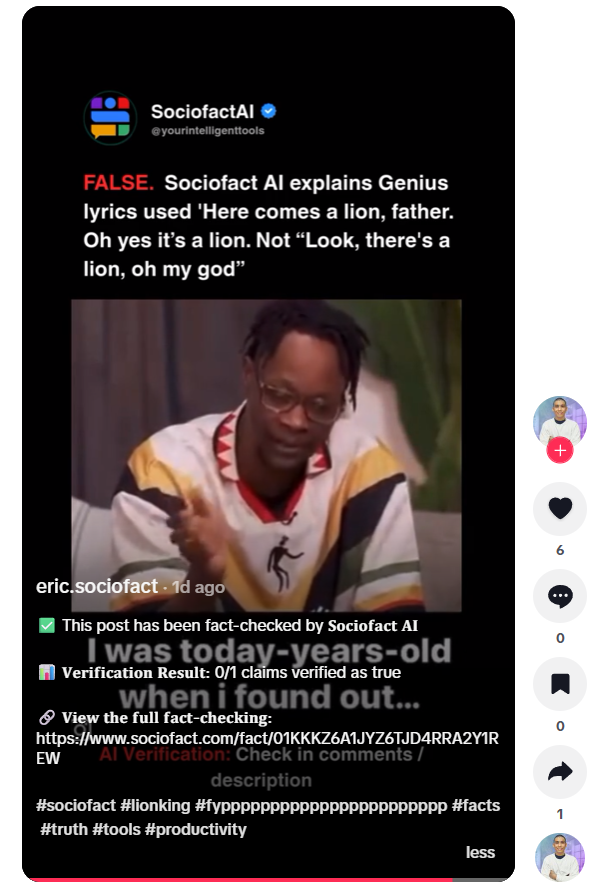 Sociofact is an AI tool that lets creators, journalists, and social users verify claims instantly...