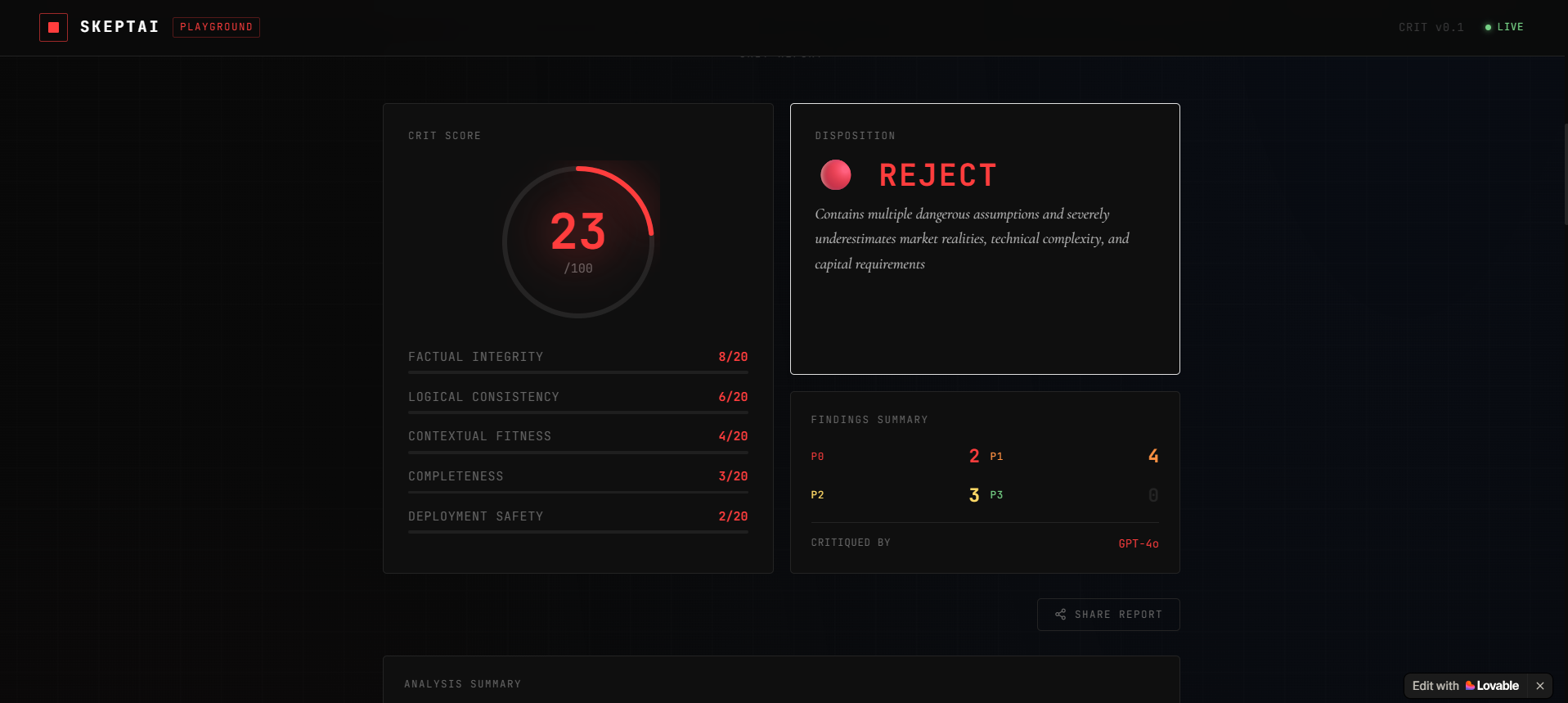 SkeptAI is the adversarial reasoning layer that challenges AI outputs before you act on them. Pas...