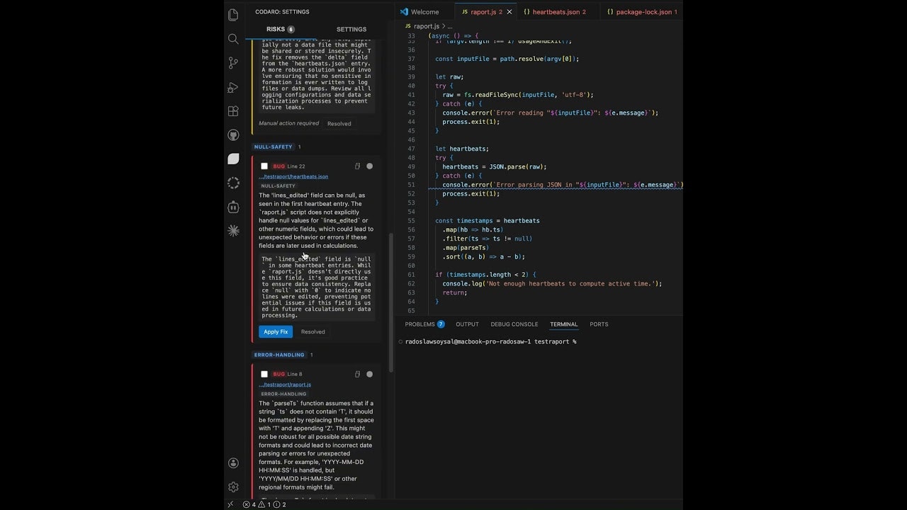 Your AI writes fast. Codaro makes it safe.