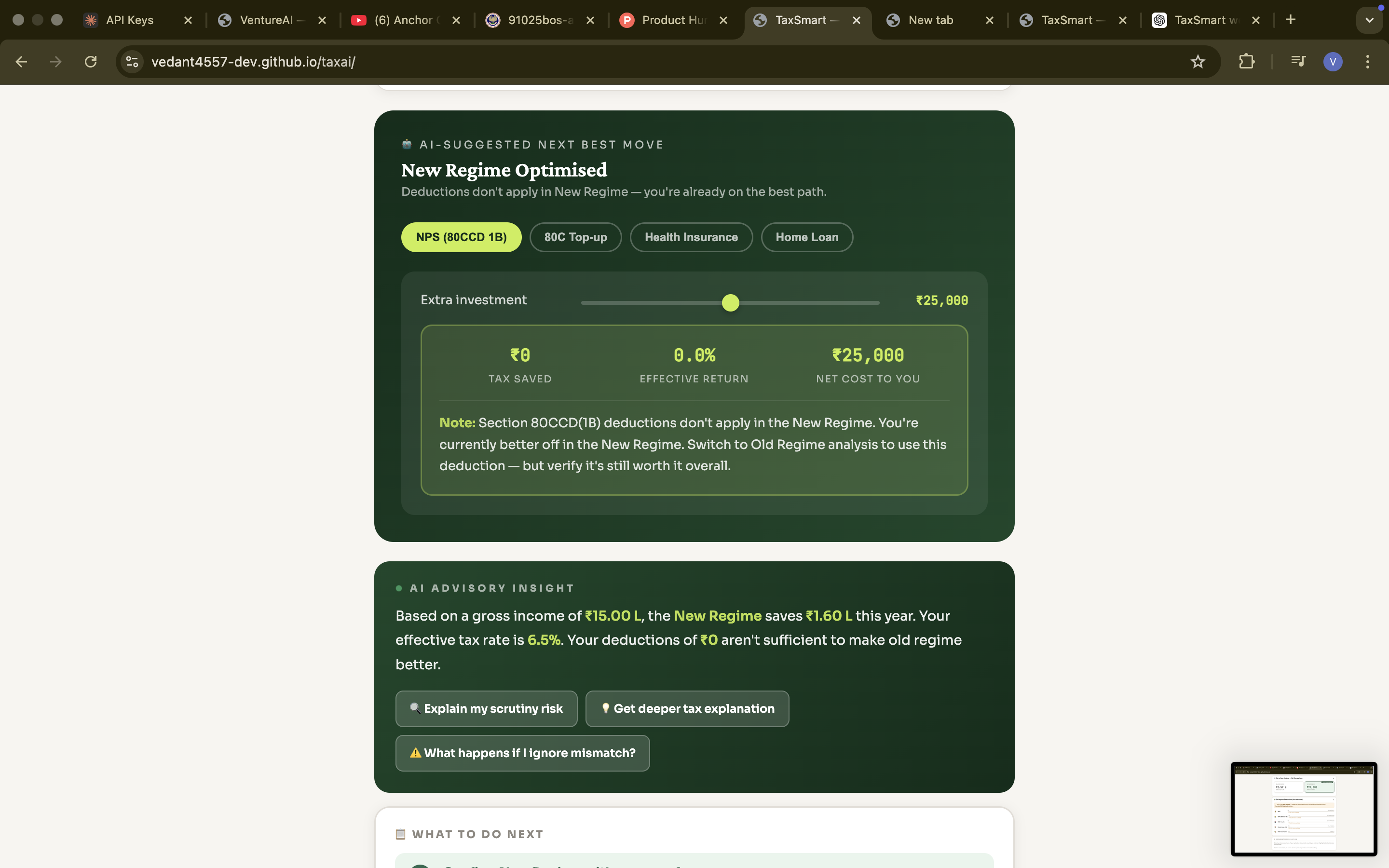 TaxSmart is an AI tool that analyzes Form 16, AIS, and 26AS to simplify Indian tax filing. Upload...