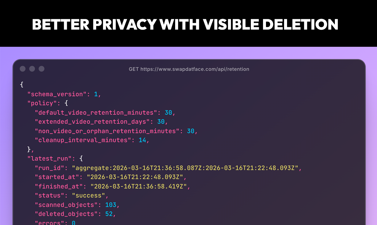 Face swap photos, videos & GIFs with cryptographic deletion